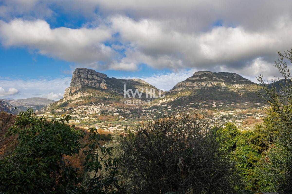 La propriété totalise 191 m² habitables et bénéficie d'un panorama saisissant sur le Baou de Saint-Jeannet, inscrivant ce logis de caractère au sein d'un paysage naturel préservé.