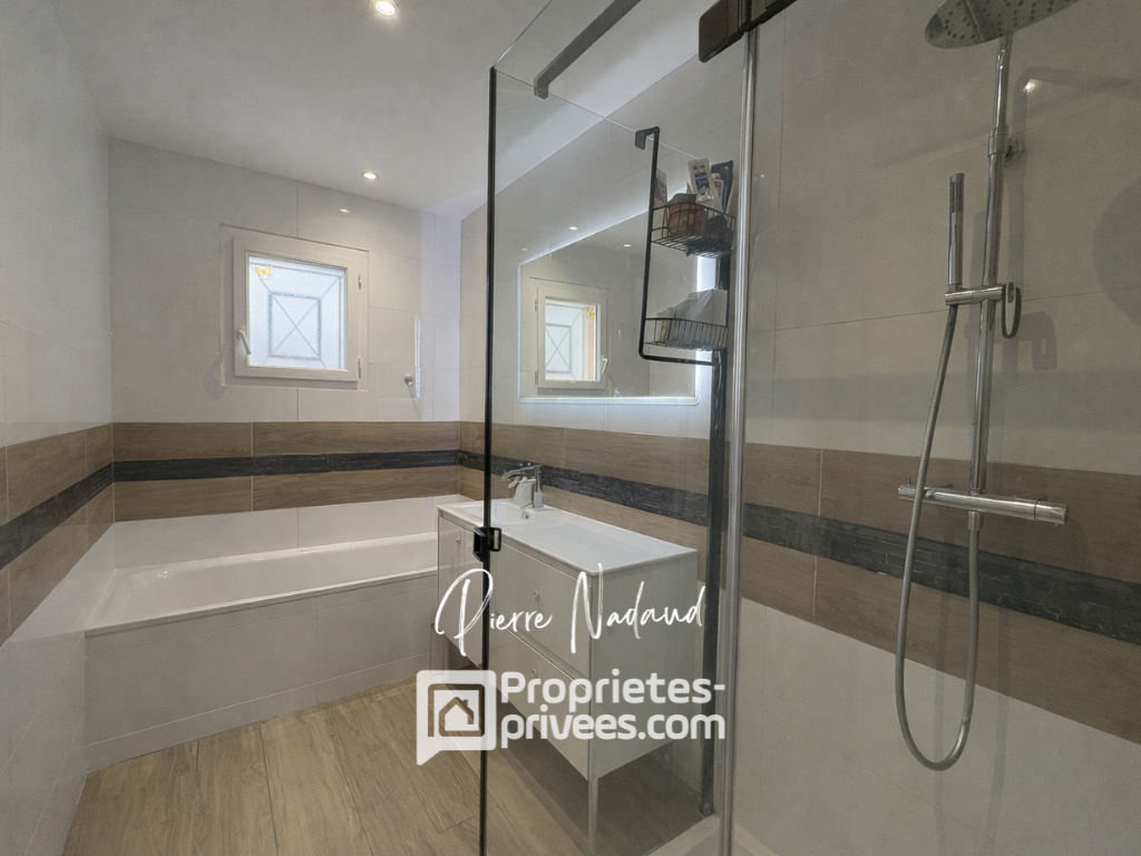 L'espace nuit offre trois chambres, une salle d'eau comprenant douche et baignoire, ainsi qu'un bureau, parfait pour le télétravail ou une pièce d'appoint.