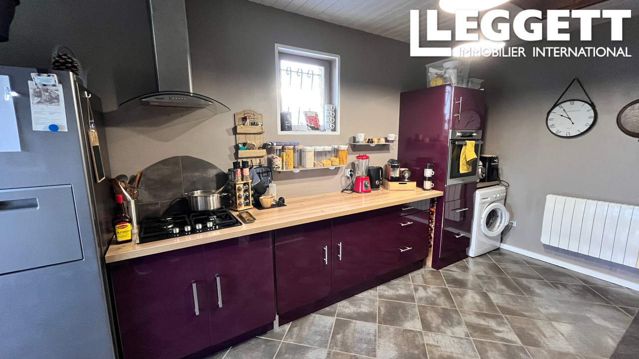 Au coeur de la maison, un poêle à pellets dans la salle à manger fournit une chaleur efficace et agréable à l'ensemble de la propriété, complétée par des fenêtres et des portes à double vitrage. La cuisine moderne est à la fois élégante et pratique, tandis que la salle de douche contemporaine, avec ses toilettes séparées, a été conçue avec soin pour offrir un confort quotidien.