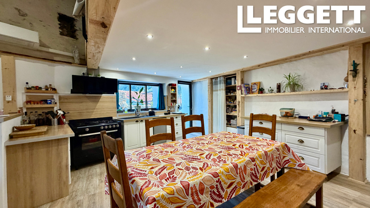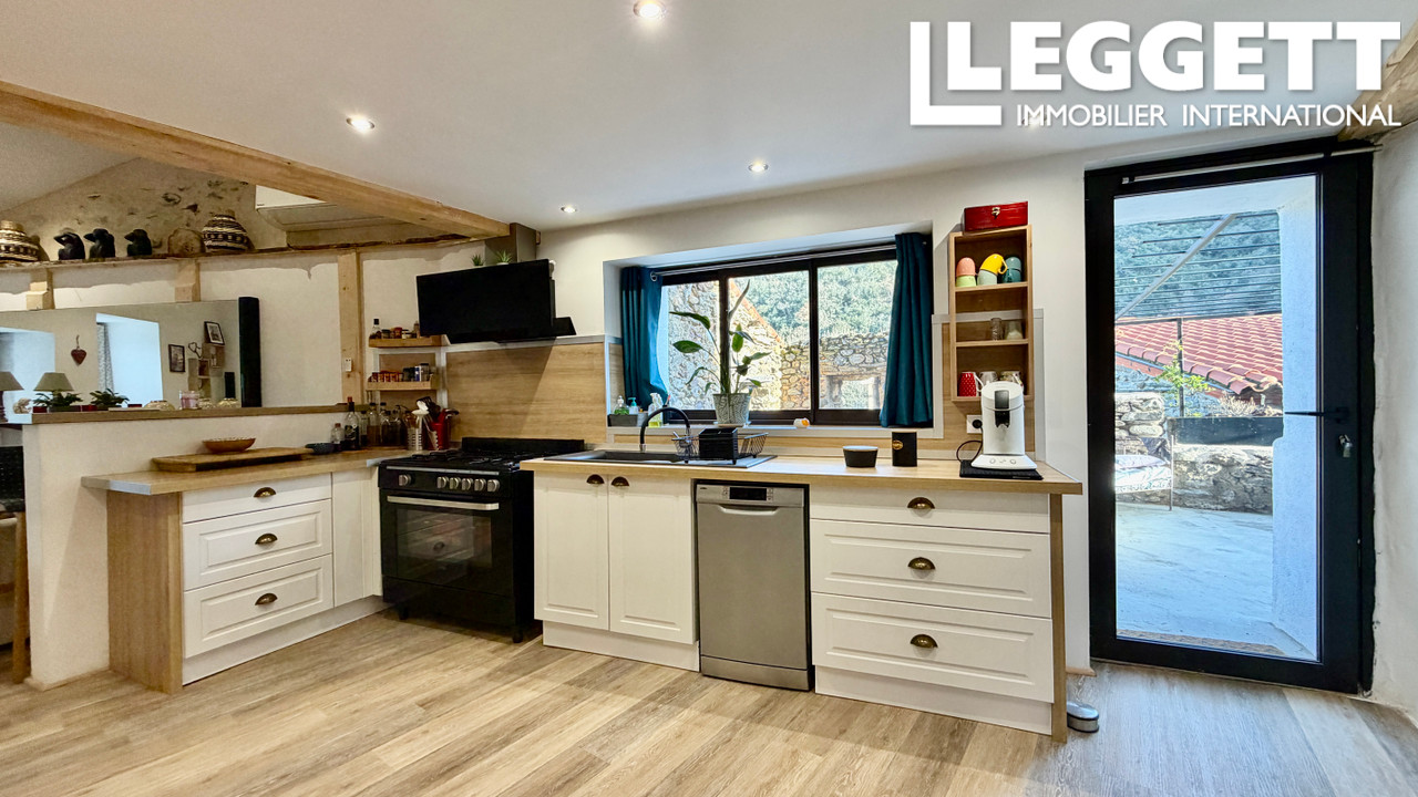A42256JTU66 - Cette charmante maison de village en pierre a été entièrement rénovée avec soin et offre trois belles terrasses, idéales pour profiter pleinement de la vie intérieure et extérieure.
