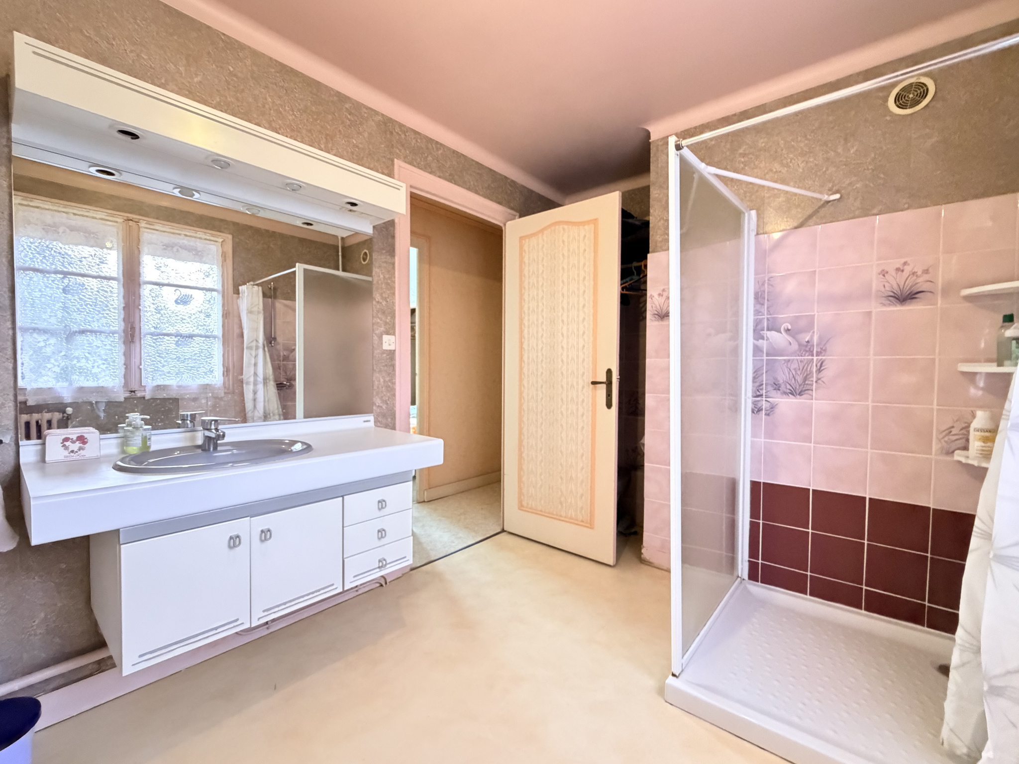 Au rez-de-chaussée et de plain-pied vous trouverez coté jour une pièce de vie lumineuse exposée Est-Ouest avec cuisine équipée et salon-séjour avec balcon et cheminée. Coté nuit, le dégagement dessert une salle d'eau, une grande salle de bain, 2 chambres sur parquets massifs et un wc.