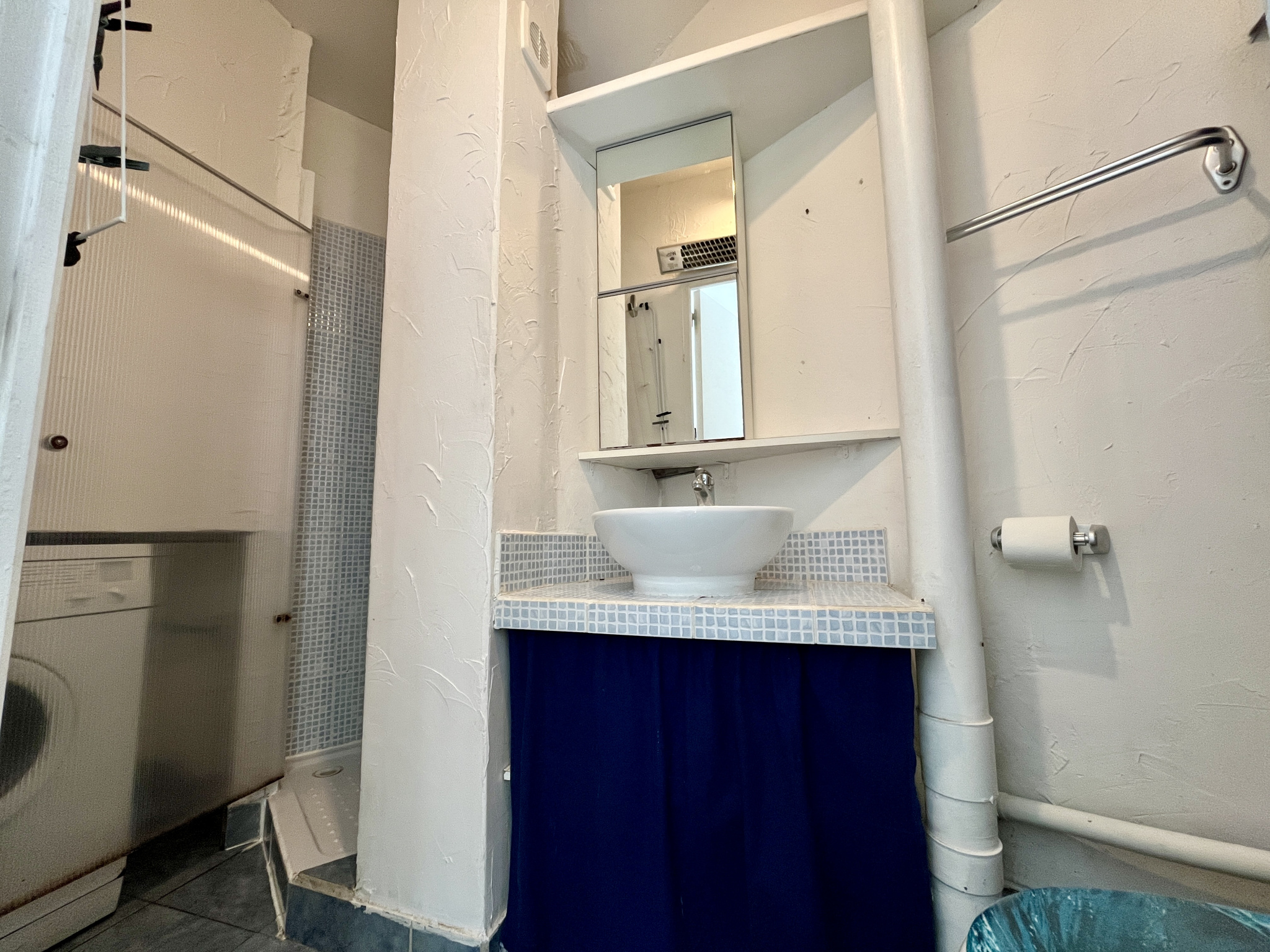 Accès direct à la Plage et aux commerces du Quartier des Présidents depuis cet appartement comprenant une pièce de vie avec cuisine, une salle d'eau avec wc, cabine avec lits superposés, balcon. faibles charges.