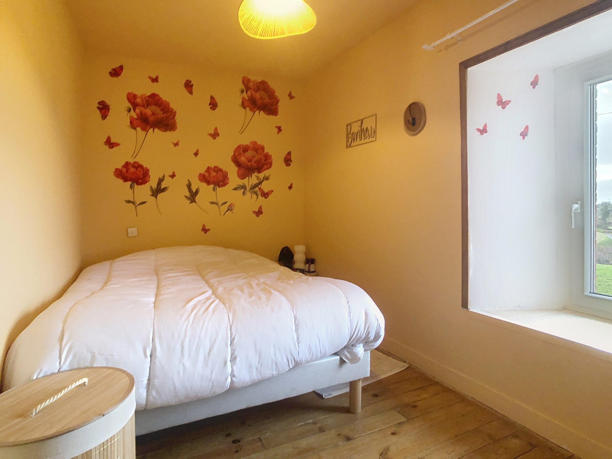 La maison offre une surface habitable d'environ 91 m2. Elle comprend une cuisine avec cheminée, un séjour de 17 m2, deux chambres à l'étage ainsi qu'un bureau d'environ 7 m2. Des travaux récents ont été réalisés, notamment l'installation d'une pompe à chaleur neuve et le remplacement des fenêtres et de la porte d'entrée en 2024.