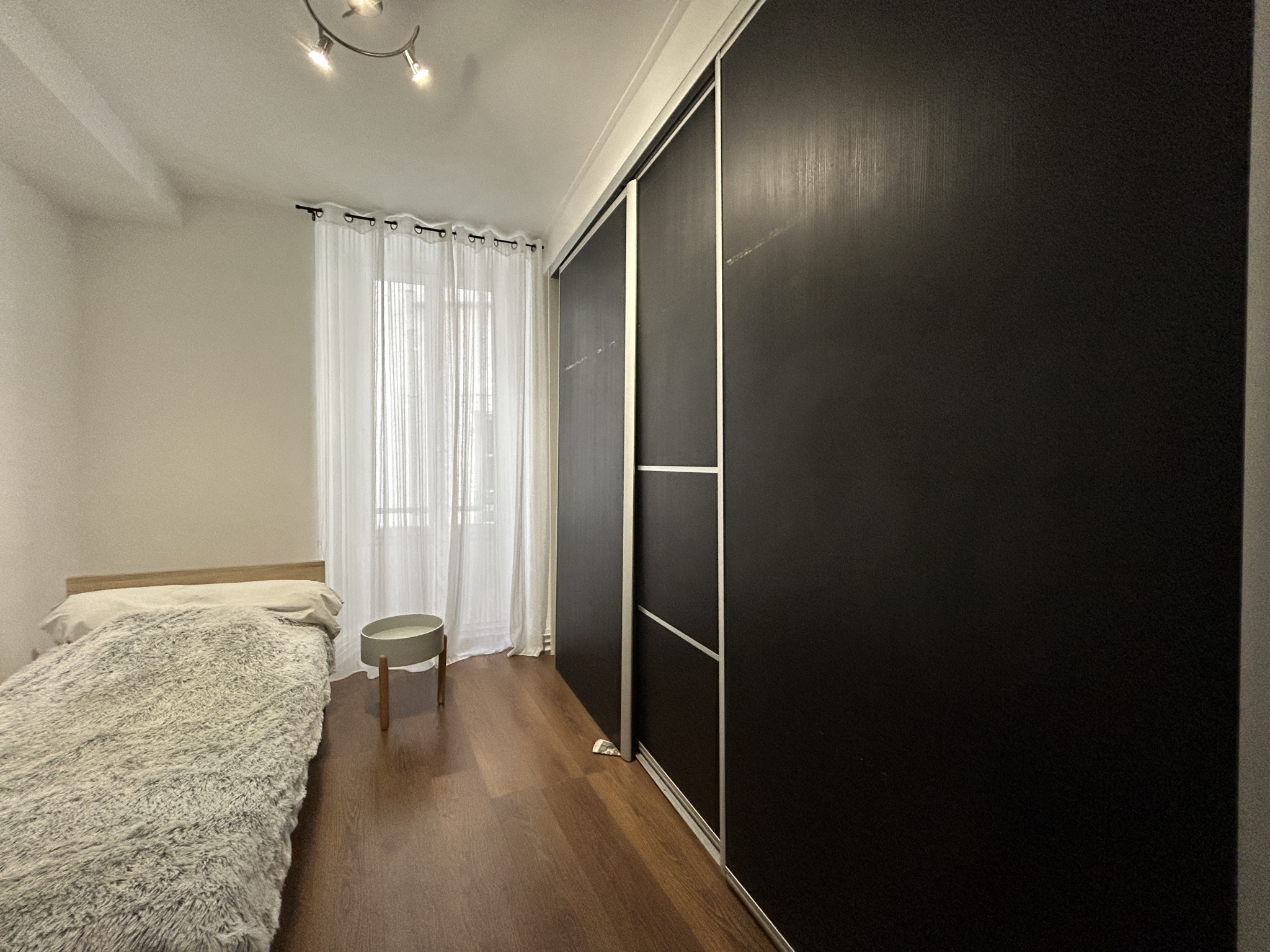 L'entrée dessert un salon-séjour lumineux avec cuisine ouverte entièrement équipée, formant un espace convivial et fonctionnel. L'appartement dispose de trois chambres, idéales pour une famille ou pour un projet d'investissement, ainsi que d'une salle d'eau et de toilettes indépendantes.
