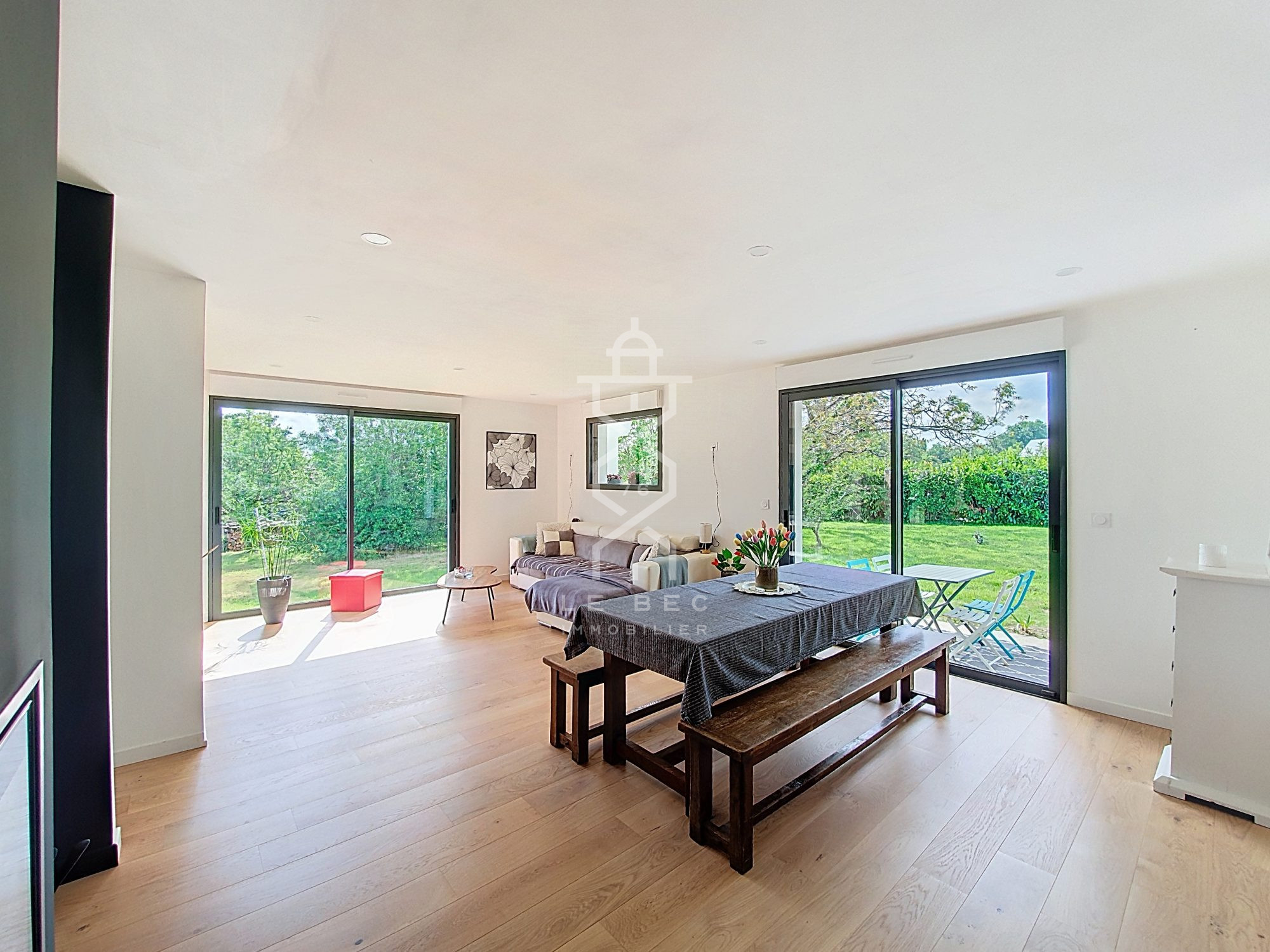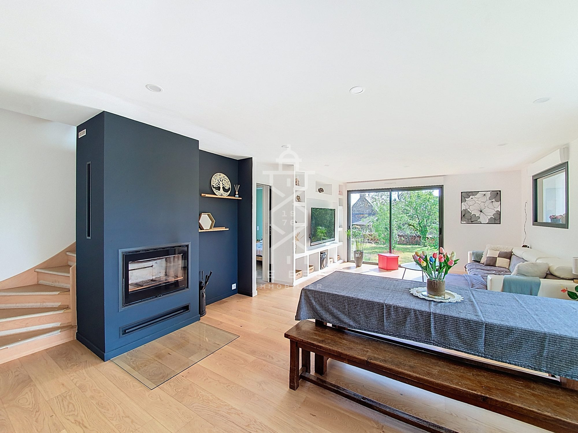 Rénovée en 2023, elle offre au rez-de-chaussée une vaste pièce de vie lumineuse, comprenant un séjour-salon et une cuisine ouverte, entièrement aménagée et équipée, le tout s'ouvrant sur un jardin idéalement exposé. Ce niveau abrite également une belle suite parentale avec salle de bains, WC et dressing, ainsi qu'une seconde chambre baignée de lumière.