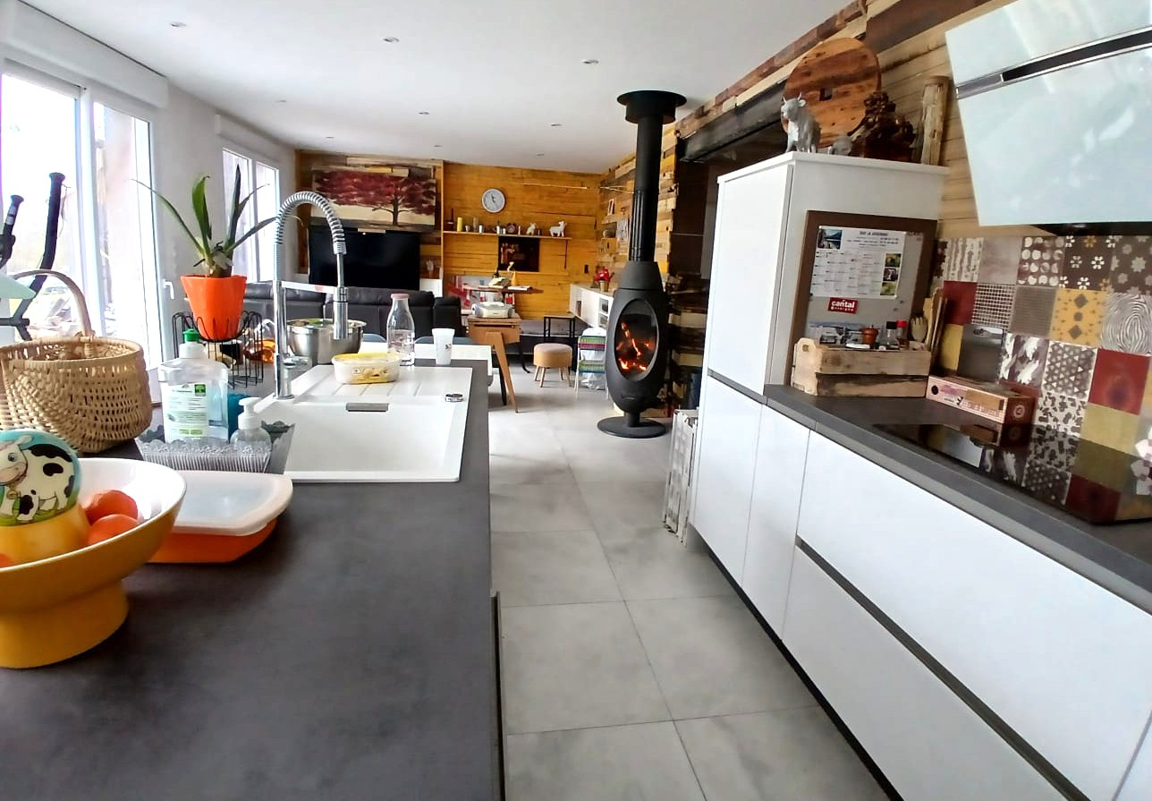 ( Toiture neuve, huisseries neuves, isolation extérieur des deux murs cotés nord, ouverture intérieure aménagement intérieur du séjour , installation poêle à bois, électricité, belle cuisine équipée ,isolation )