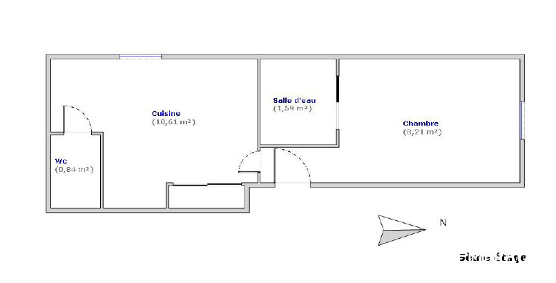 Composé d'un séjour avec cuisine aménagée équipée exposé Ouest, placard, d'une chambre, d'une salle d'eau et de WC séparés. L'ensemble est en bon état général.