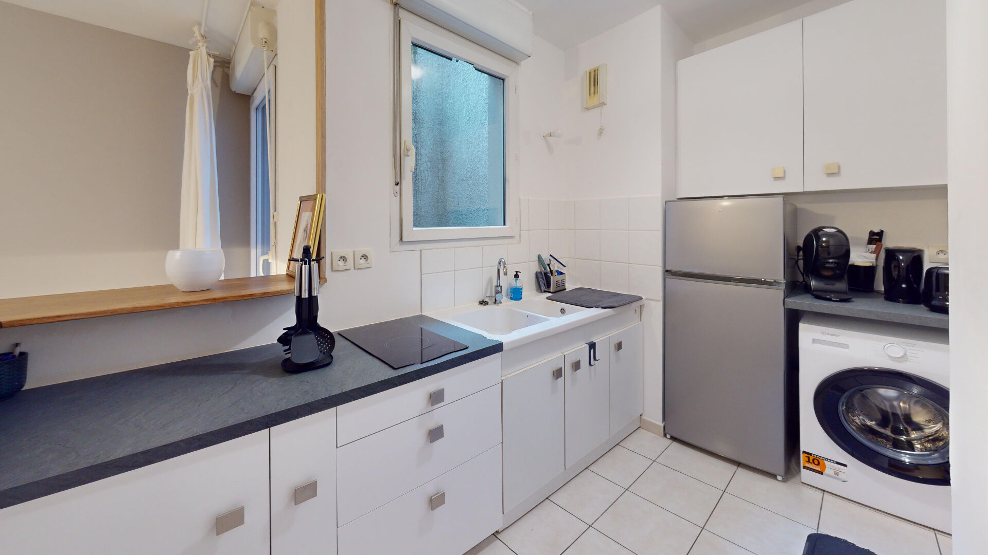 A 5 min du métro Crimée, au sein d'un petit immeuble très récent (2009) composé seulement de 13 appartements, au calme sur cour, appartement 3P de 59.40m² en rez de jardin en parfait état.