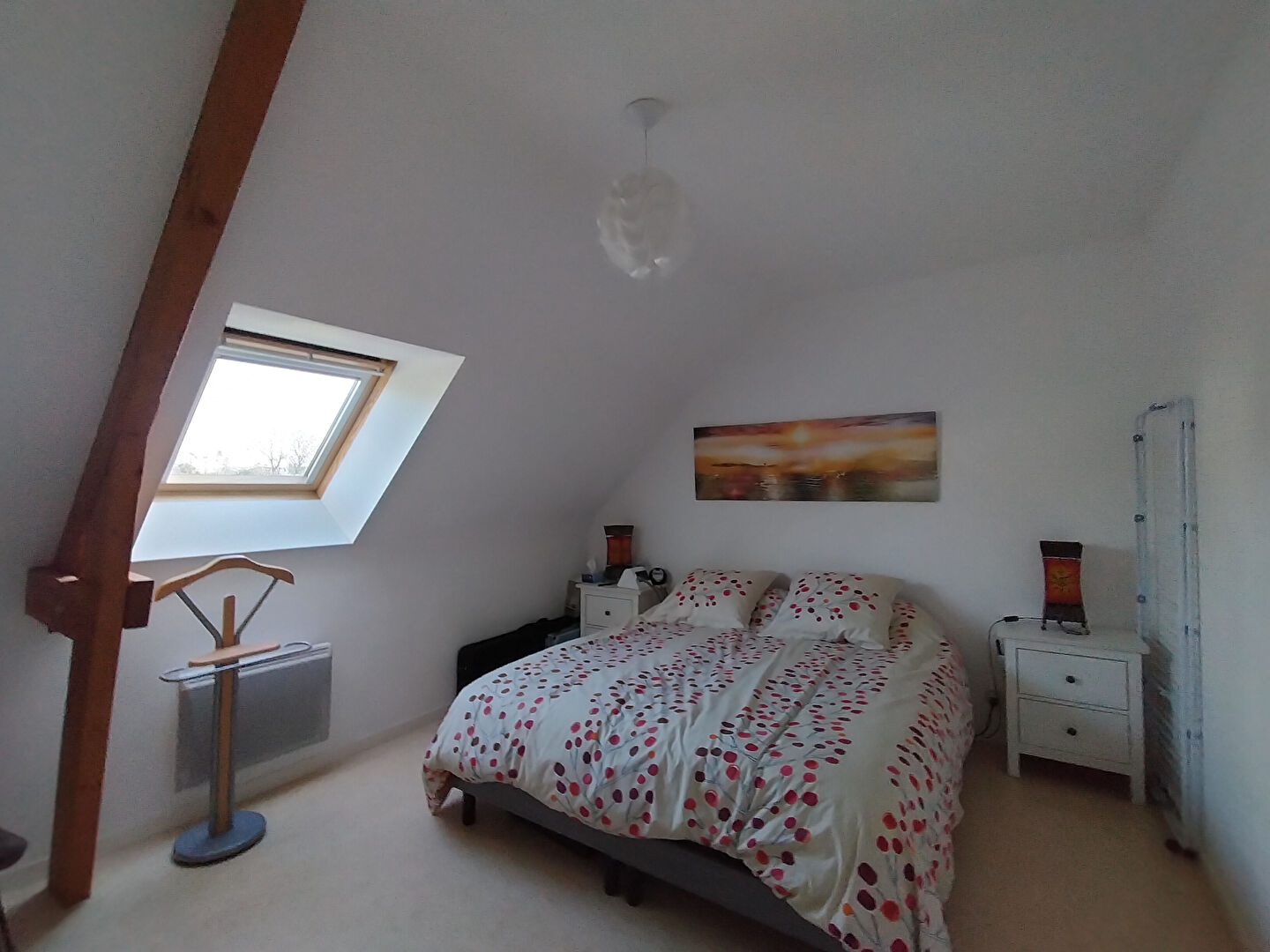 A l'étage un palier vient desservir 3 chambres, une salle d'eau avec WC.