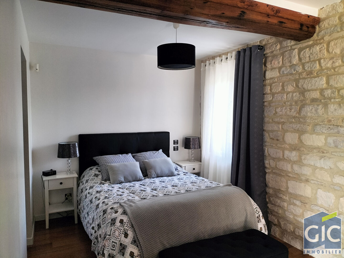 Pour accéder à l'étage un bel escalier en pierre donne sur une mezzanine, 4 chambres, une salle de douche et wc