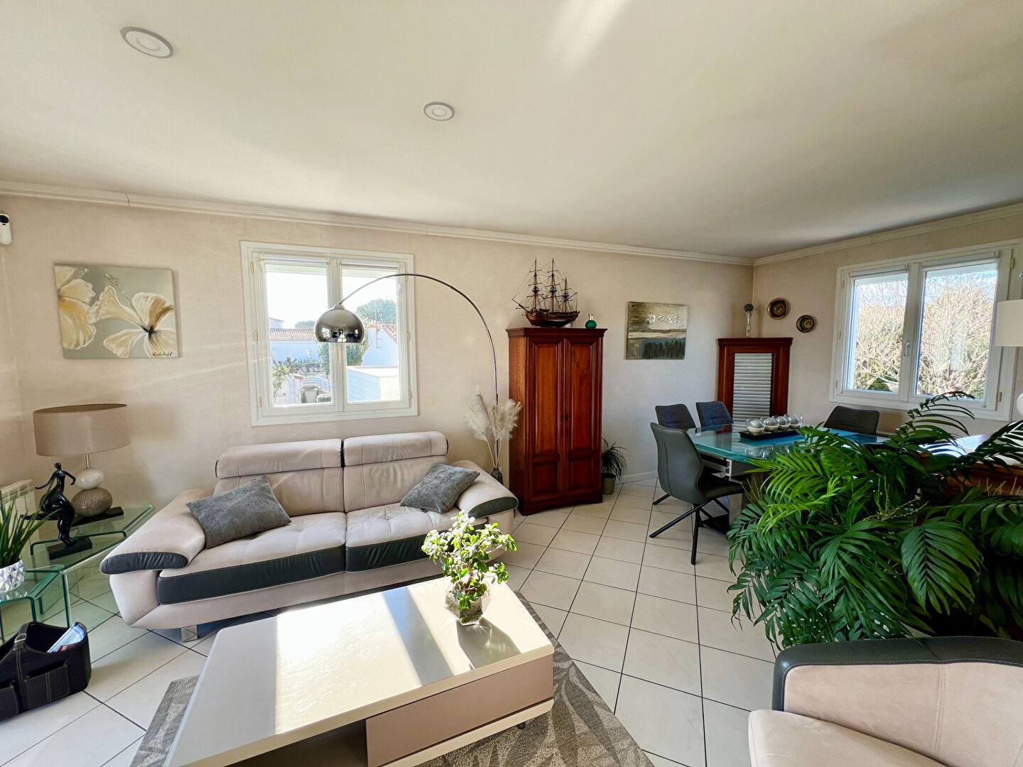 Vaux-Sur-Mer - Idéalement située à Vaux-sur-Mer, entre le centre-ville accessible à pied à seulement 700 mètres et la plage de Pontaillac à 1,3 km, cette maison très bien entretenue offre une surface habitable de 129 m² sur une parcelle de 640 m² entièrement close et joliment arborée, au coeur d'un quartier calme et habité à l'année.