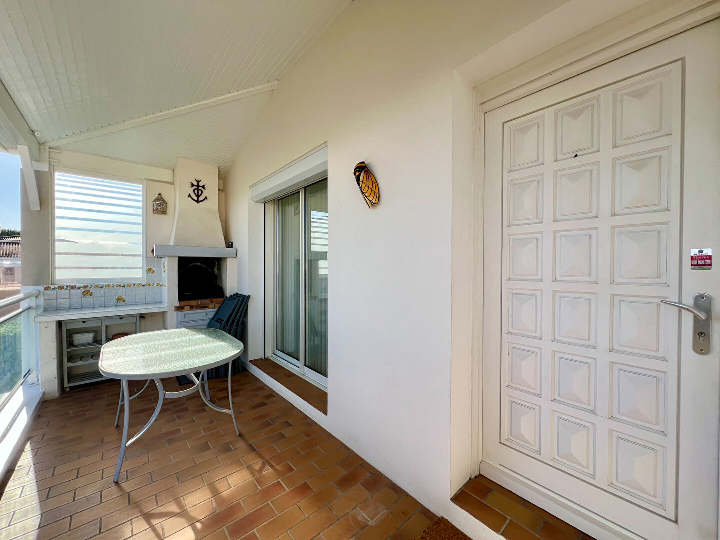 La vie principale se situe à l'étage avec une entrée ouvrant sur un séjour traversant baigné de lumière, prolongé par une terrasse couverte équipée d'un barbecue en pierre, ainsi qu'une cuisine indépendante. L'espace nuit se compose de trois chambres, d'une salle de bains et d'un WC indépendant.