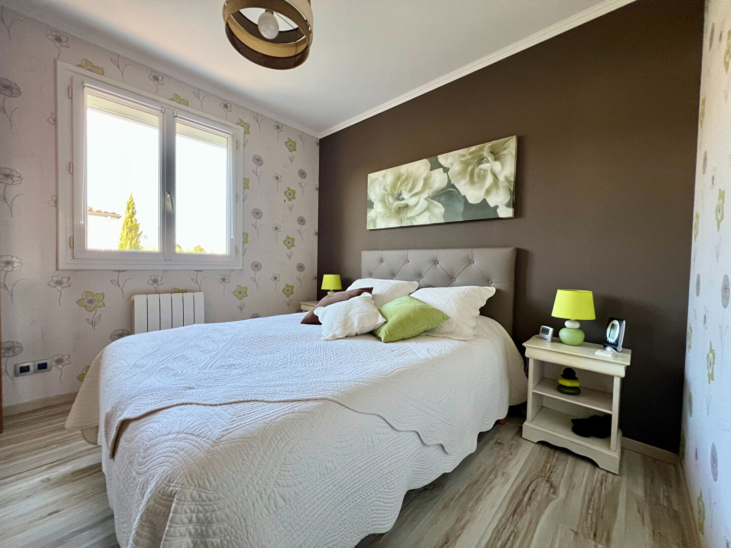 À l'extérieur, le jardin soigneusement arboré et entièrement clos dispose également d'un cabanon de rangement. Cette maison bénéficie de prestations de qualité telles que des volets roulants électriques, une pompe à chaleur, un portail motorisé et un adoucisseur d'eau.