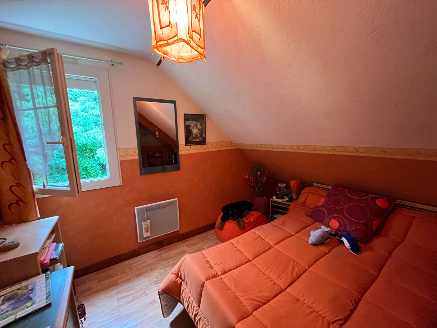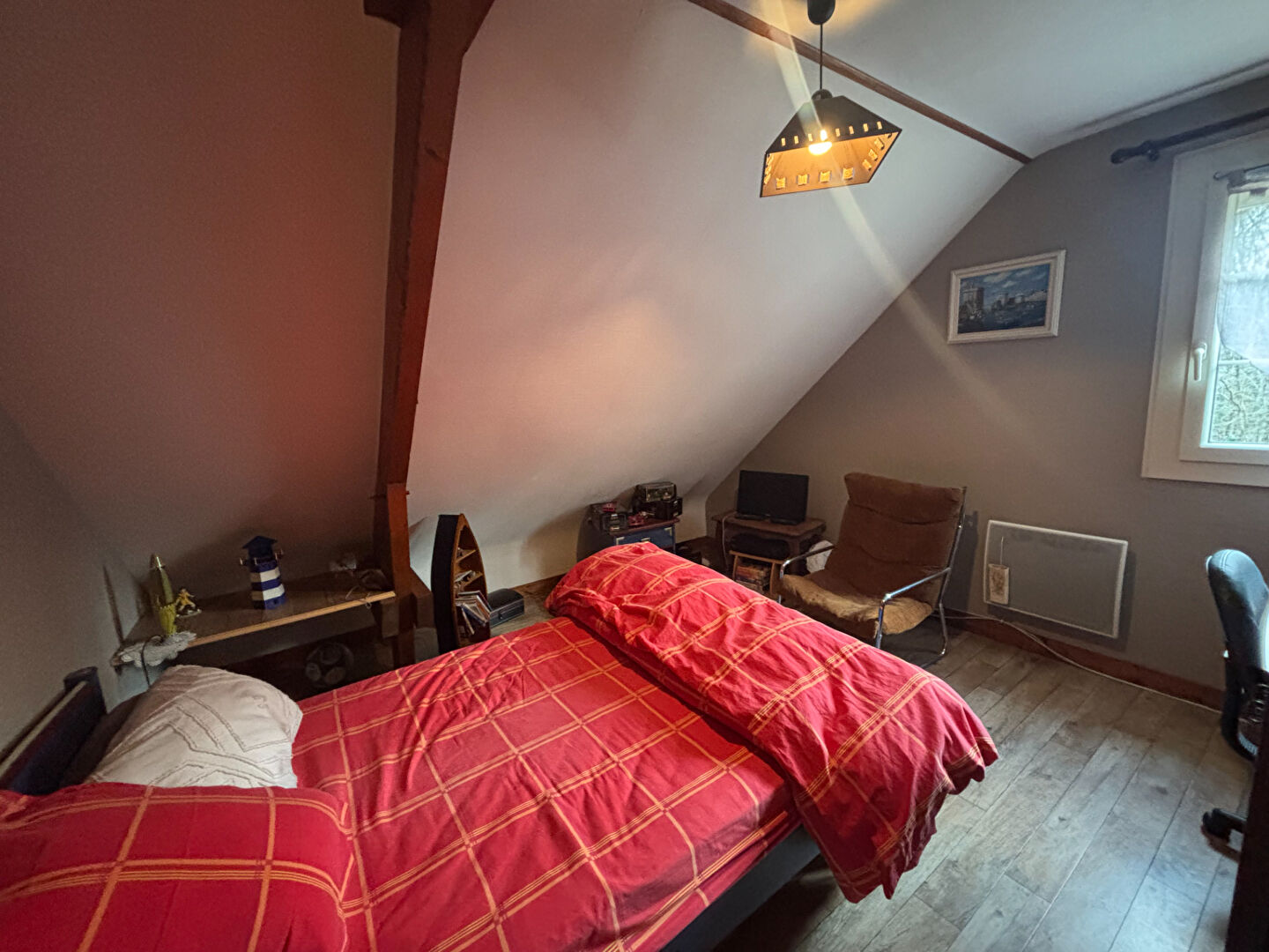 À l'étage, vous découvrirez trois chambres supplémentaires ainsi qu'un spacieux grenier, pouvant être aménagé selon vos besoins ou servir d'espace de stockage.