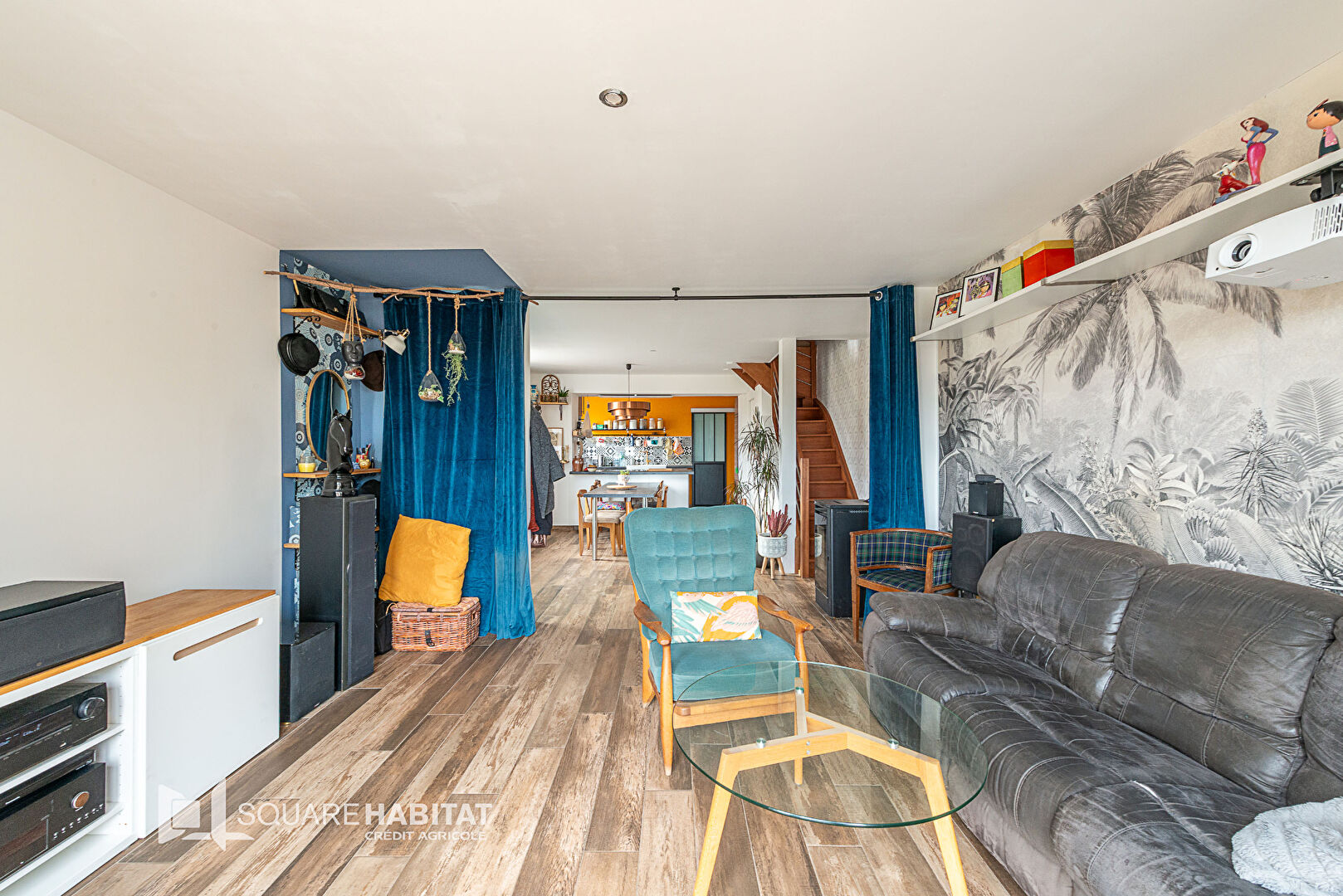 - Au RDC : une grande pièce de vie de 50 m² environ avec une cuisine ouverte moderne et équipée ainsi qu'un poêle à pellet, une buanderie et un wc.