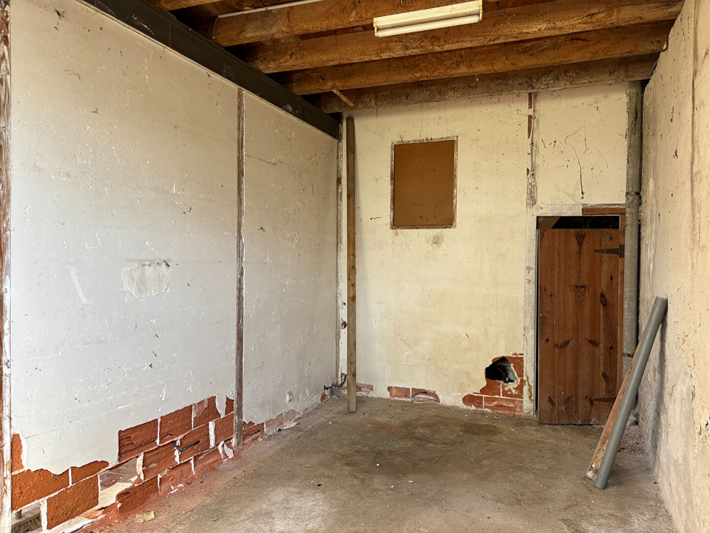 A rénover entièrement, il comprend au rez-de-chaussée magasin, salon/cuisine, wc, garage.