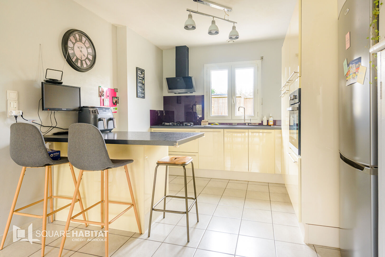 Au rez-de-chaussée, l'entrée dessert un salon lumineux avec vue sur le jardin, une salle à manger ouverte sur une cuisine équipée à aménager selon vos envies.