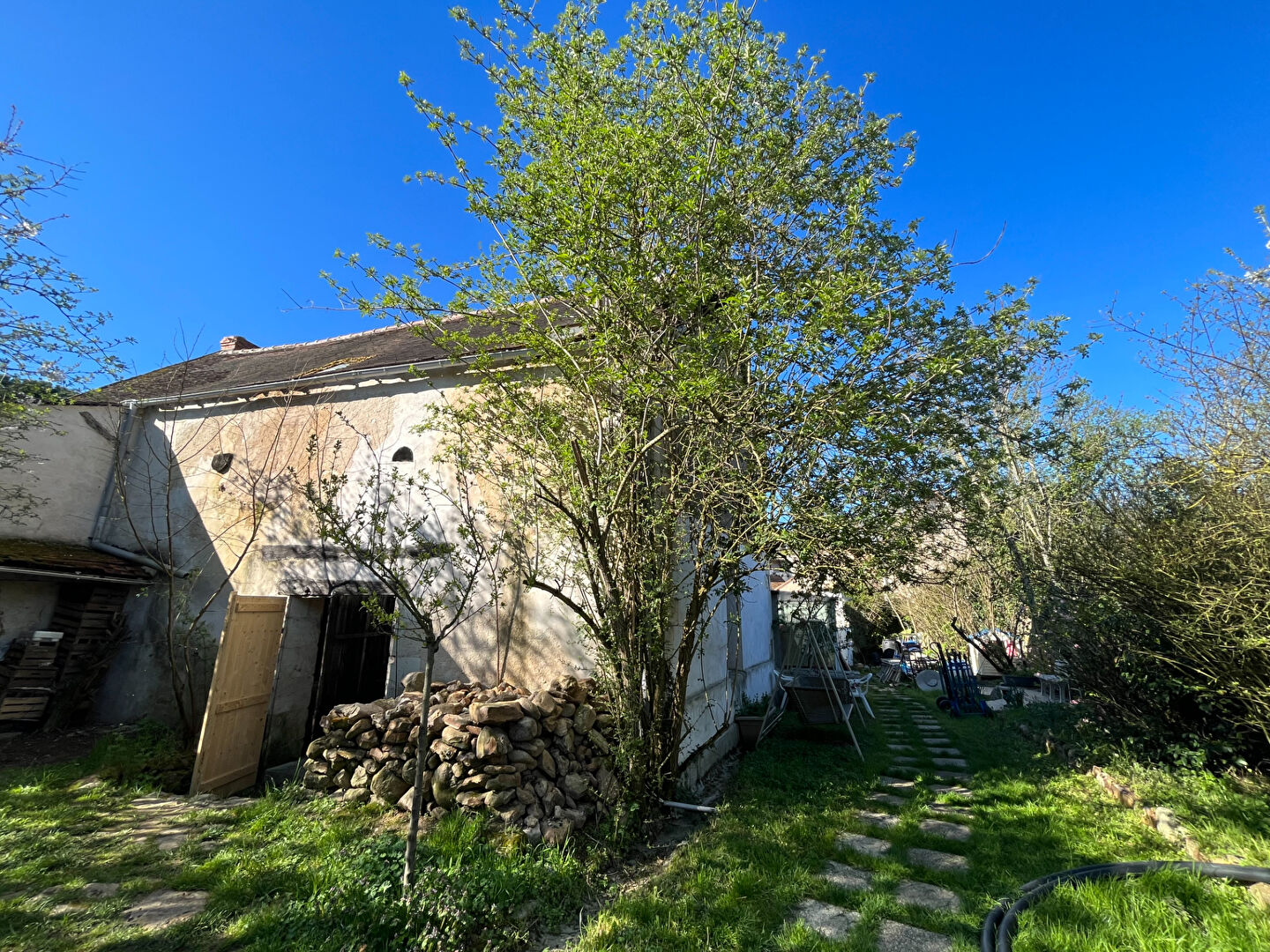 Plusieurs fruitiers comme pommiers, pêchers, poiriers, cerisiers, mirabelliers sont présents sur la parcelle.