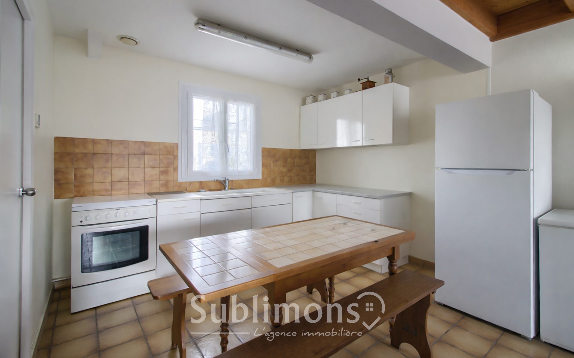 L'espace de vie se complète d'une cuisine, accompagnée d'une arrière-cuisine, pratique pour le rangement et l'organisation du quotidien.
