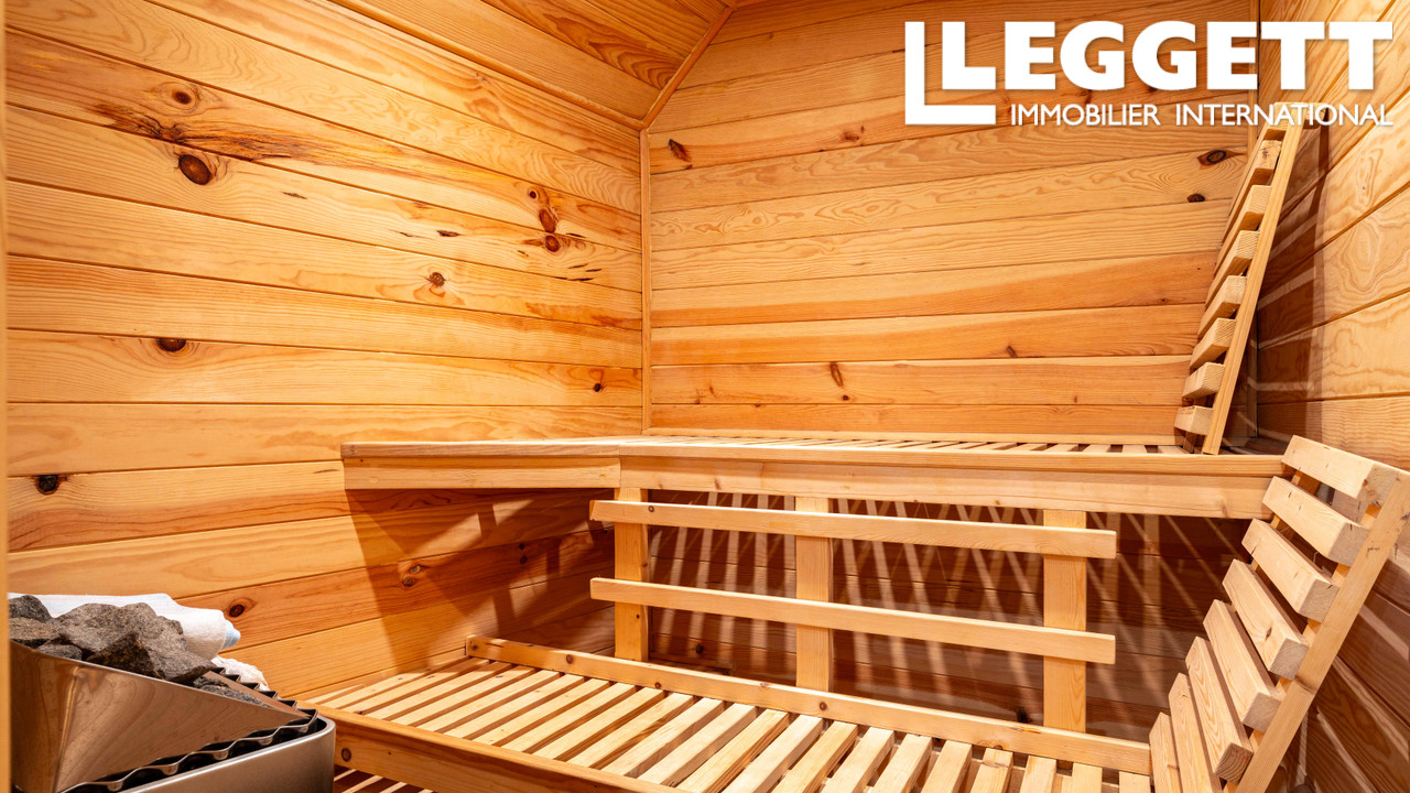 La cuisine-salle à manger s'ouvre sur une magnifique terrasse agrémentée d'un puits, parfaite pour vos repas en plein air. Pour votre bien-être, un sauna privé vous garantit des moments de relaxation inoubliables.