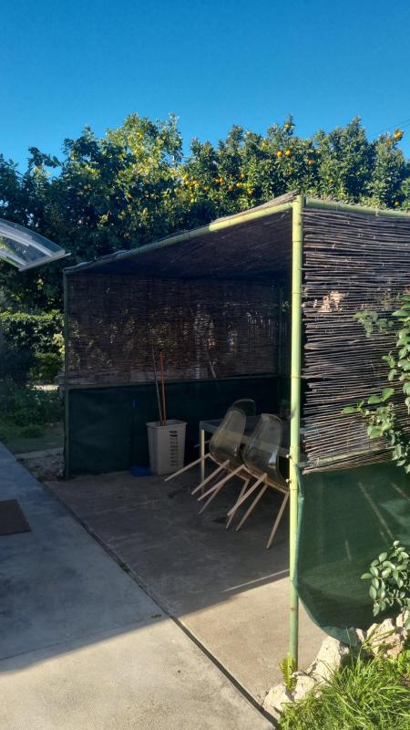 Terrain attenant de 400m² environ, calme et ensoleillé. Parkings.