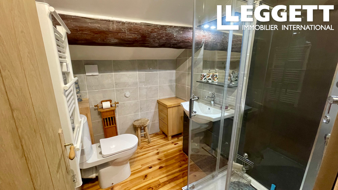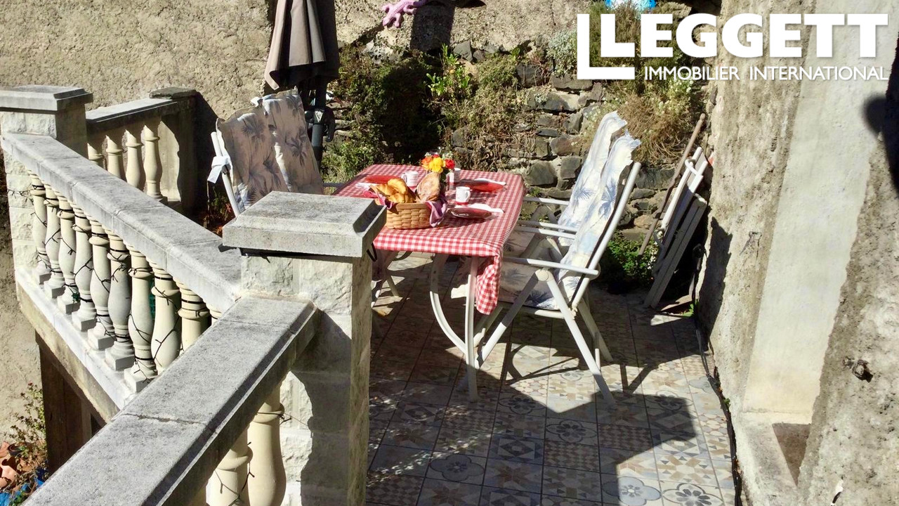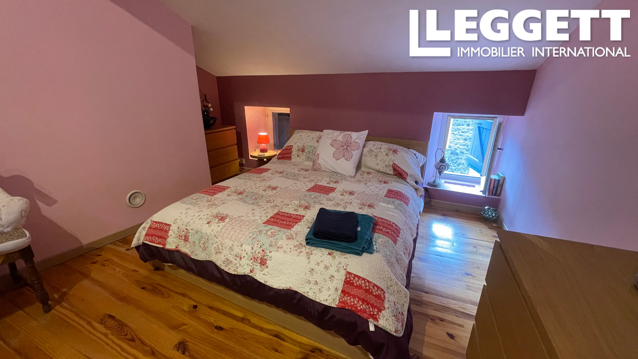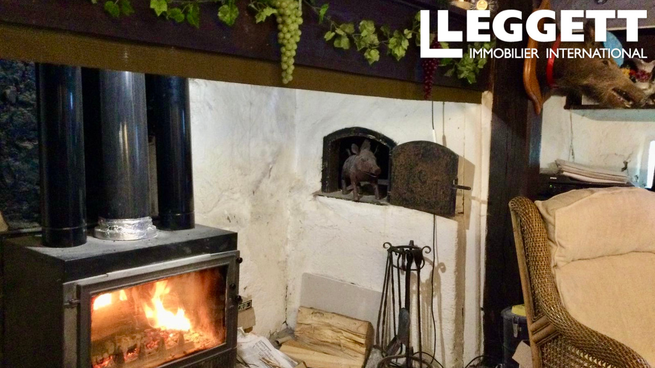 A42203JOO11 - Une charmante maison de village de caractère comprenant quatre chambres doubles, une spacieuse cuisine/salon/salle à manger moderne et ouverte, une cheminée à alcôve avec poêle à bois, donnant sur une terrasse pour les repas en plein air avec vue panoramique sur le village et les contreforts des Pyrénées.