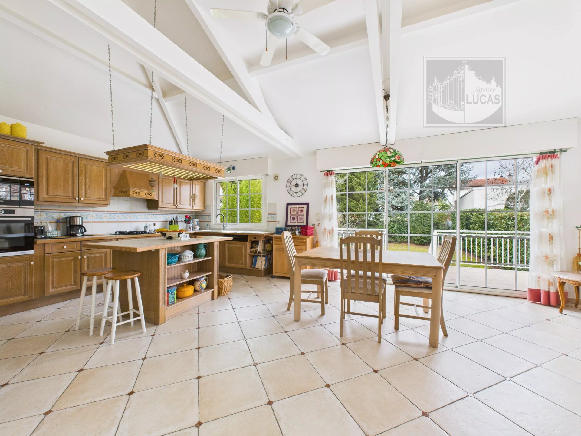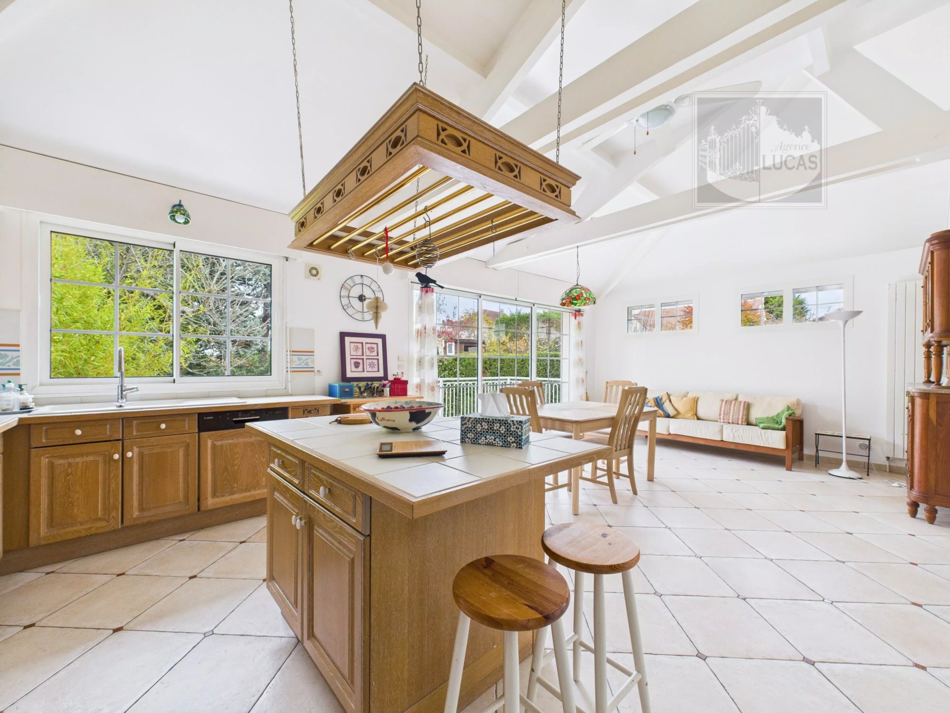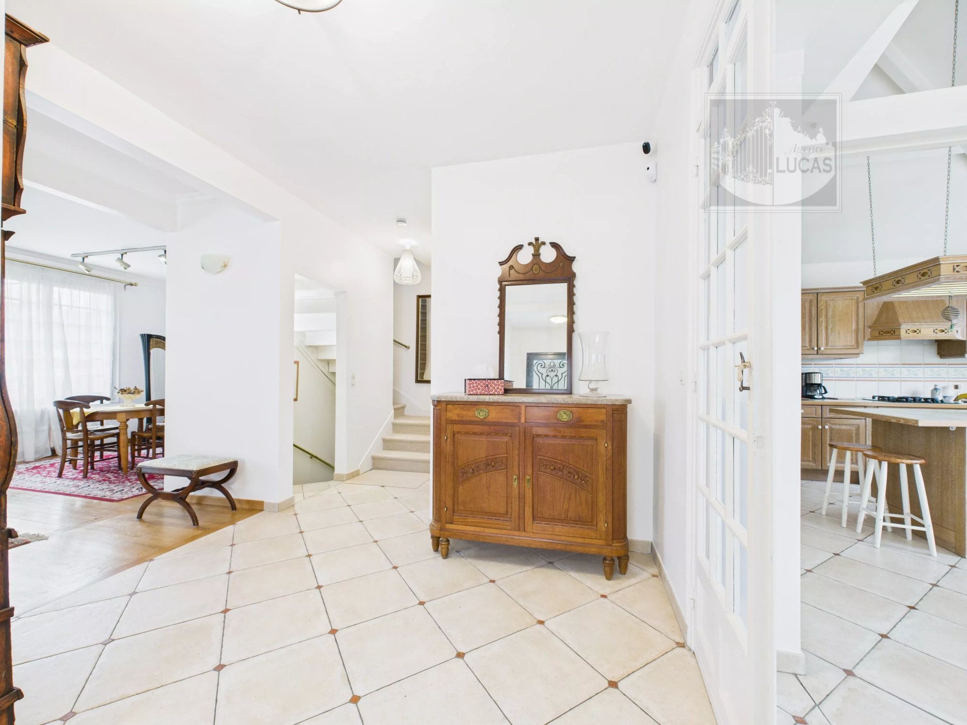 Elle se compose d’une entrée desservant un salon chaleureux et baigné de lumière, d’une très belle cuisine dinatoire donnant sur une terrasse avec accès au jardin sans vis-à-vis.