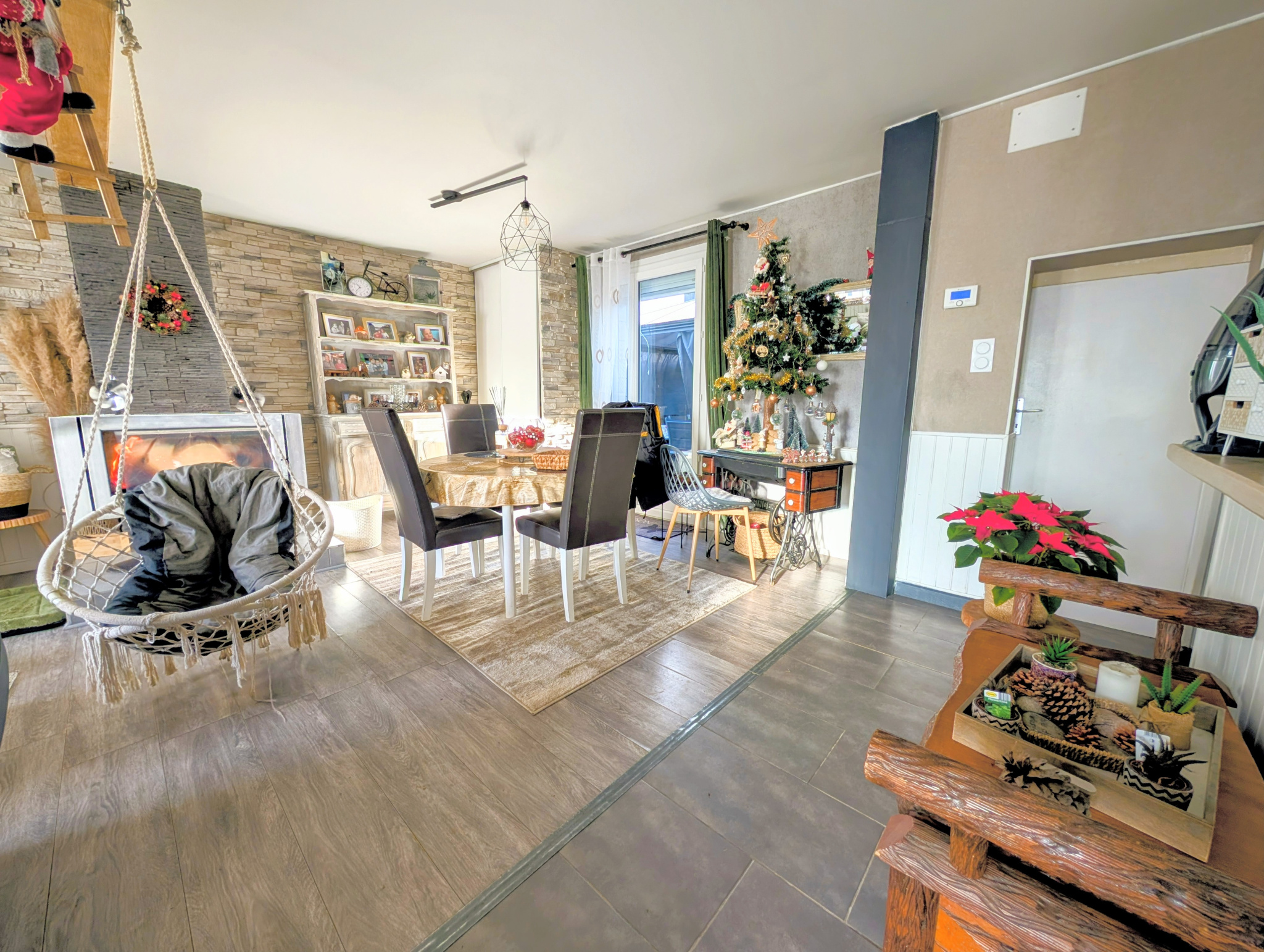Chauffage performant : Système combinant une pompe à chaleur (économique) et le plaisir des flammes avec le poêle à bois.
