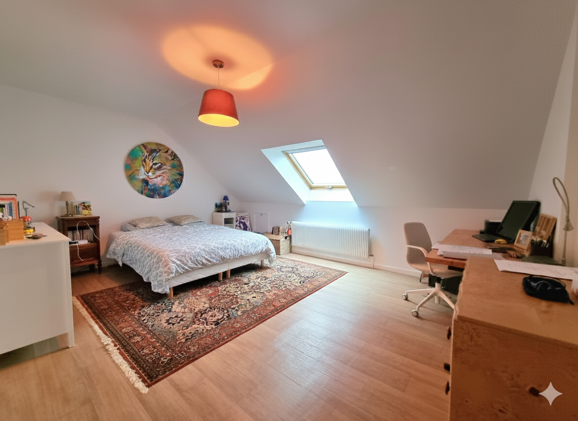 Un palier, 2 chambres, un bureau, une salle de bains et des WC.