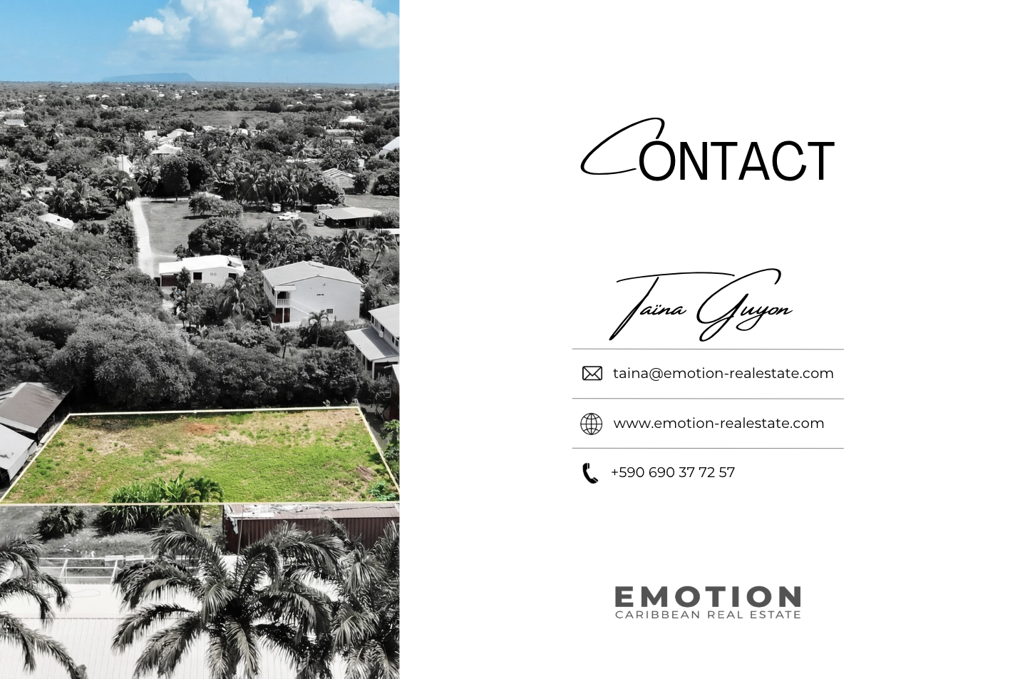 Pour plus d'informations ou pour organiser une visite, contactez-nous dès maintenant par téléphone ou WhatsApp au +590 690 37 72 57. Retrouvez également toutes nos exclusivités sur Instagram @taina_guyon.