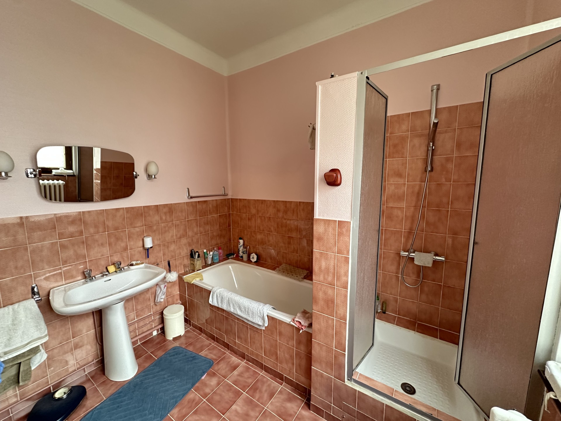 En demi palier : un palier desservant un WC et une salle de bains avec douche.