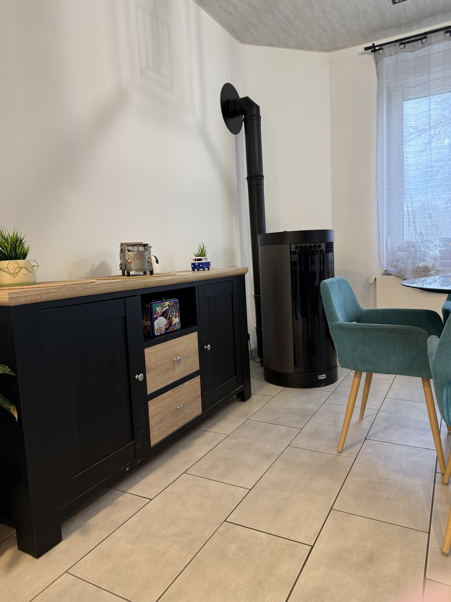 Au rez-de-chaussée, entrée sur double séjour lumineux, cuisine ouverte équipée,plain pied de confort avec chambre, salle de douche et WC.