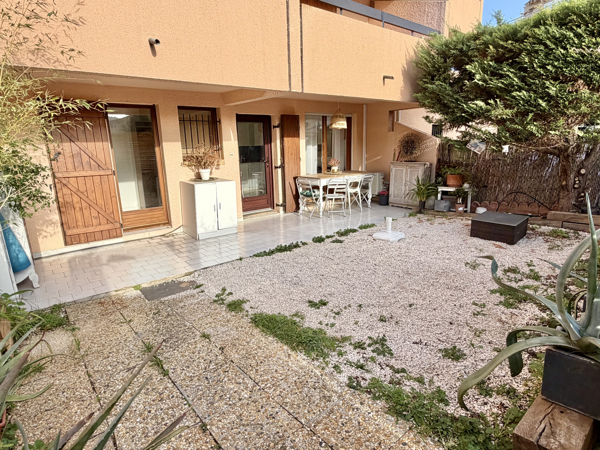 Sanary-sur-Mer - Découvrez cet appartement T2 en rez-de-jardin entièrement rénové dans une résidence sécurisée avec piscine et parking collectif.