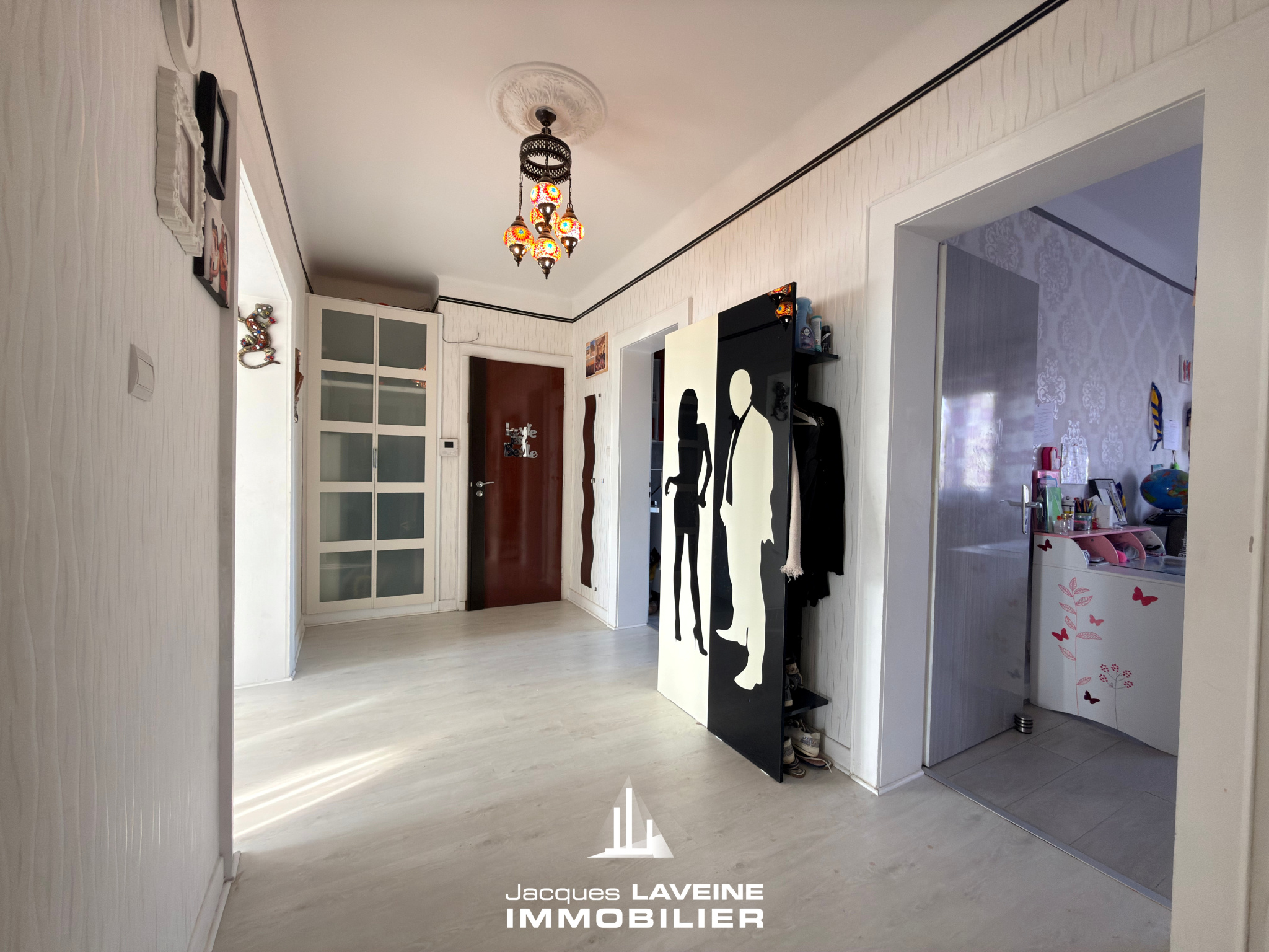 EXCLUSIVITÉ JLI! A quelques minutes à pied de la Gare et de toutes commodités, dans résidence bien tenue avec ascenseur, au 4ième et dernier étage, vaste appartement 4 pièces de 98m2! il comprend une grande entrée avec placards, un lumineux salon-séjour de 37m2 donnant sur balcon orienté sud, une cuisine équipée, deux grandes chambres (16 et 17m2) une salle de bains récente, un wc indépendant, un second balcon. Une cave au sous-sol et un garage fermé à l'arrière de l'immeuble. Double vitrage pvc avec volets motorisés. Chauffage urbain.