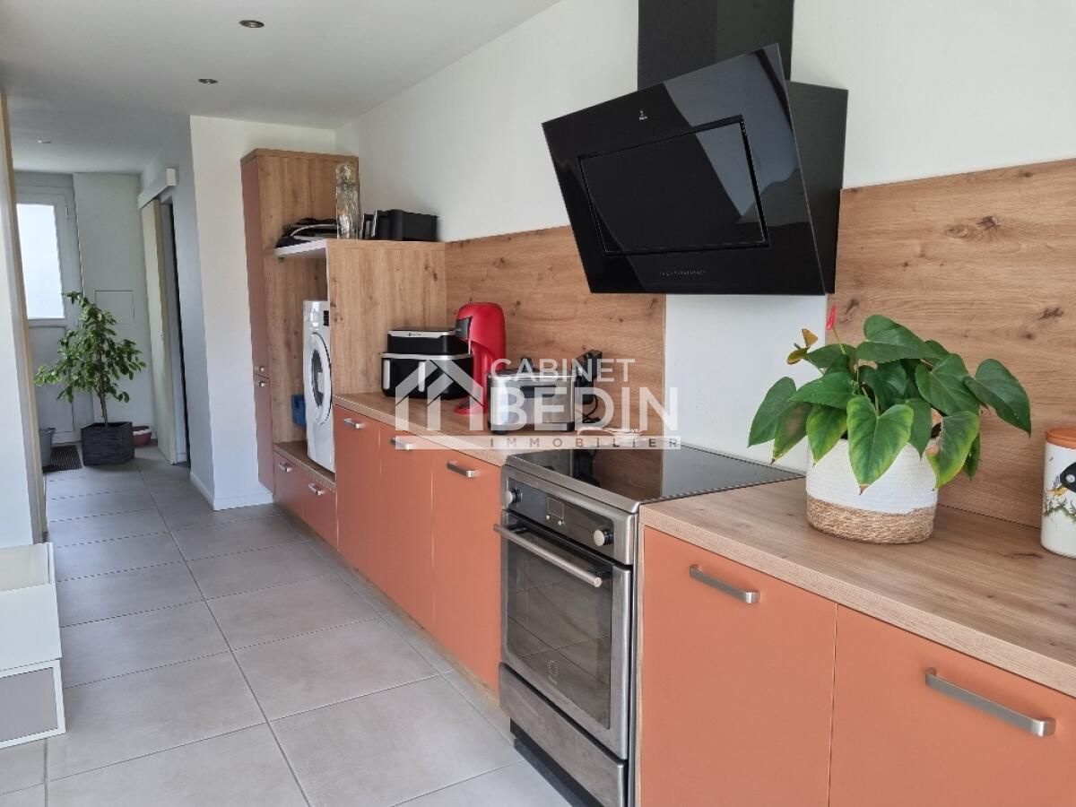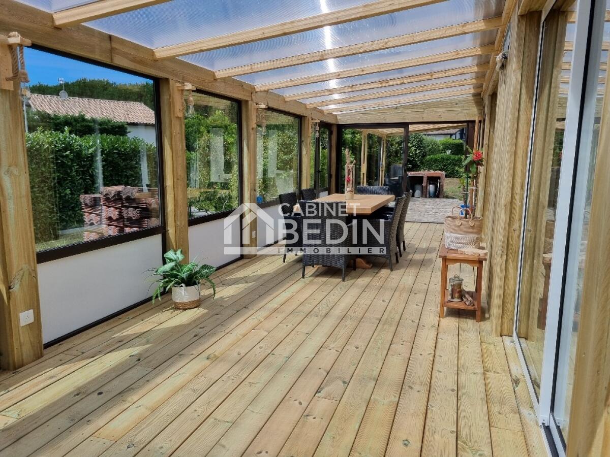 Située au calme tout en étant proche des commerces, des écoles et à 5 min en voiture de la gare TER. Maison lumineuse et sans travaux comprenant un vaste salon/séjour/véranda prolongée par une terrasse, une cuisine aménagée et équipée, 3 chambres et 2 salles d'eau, une cuisine d'été avec cellier. Cave. Garage attenant d'environ 37 m². Cheminée. Double vitrage. Pompe à chaleur. A proximité du lac de Parentis en Born. Accès à l'A63 pour Bordeaux ou Bayonne.