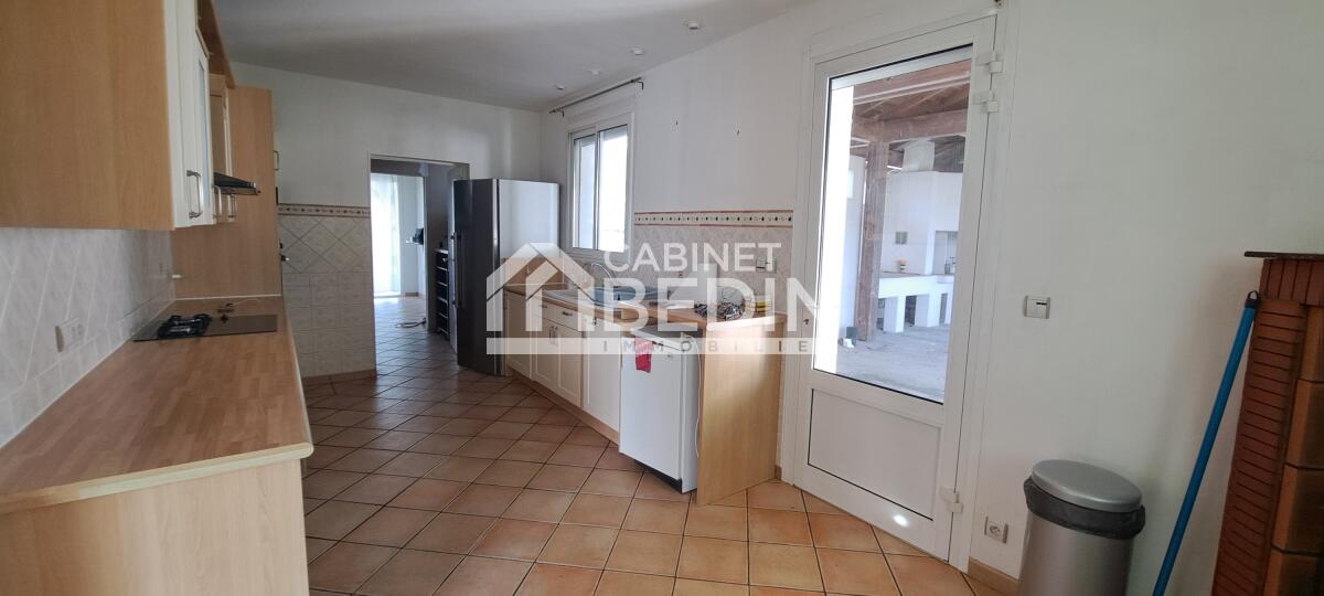 Au rez-de-chaussée : 3 chambres, une salle d'eau, une grande cuisine dinatoire de plus de 17 m².