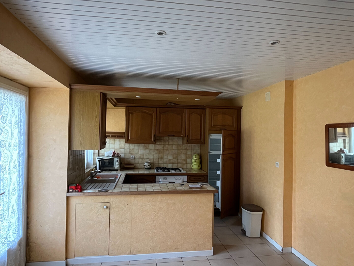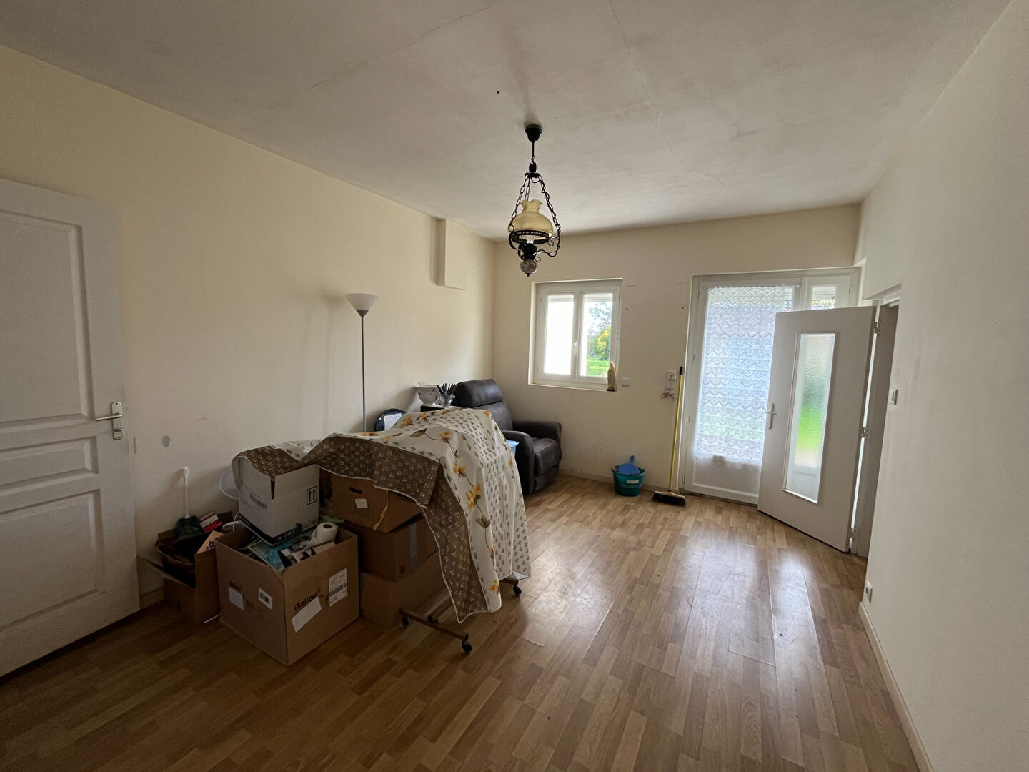 La maison principale est composée au rez-de-chaussée d'une cuisine aménagée avec séjour dans le prolongement, une chambre, et salle d'eau.