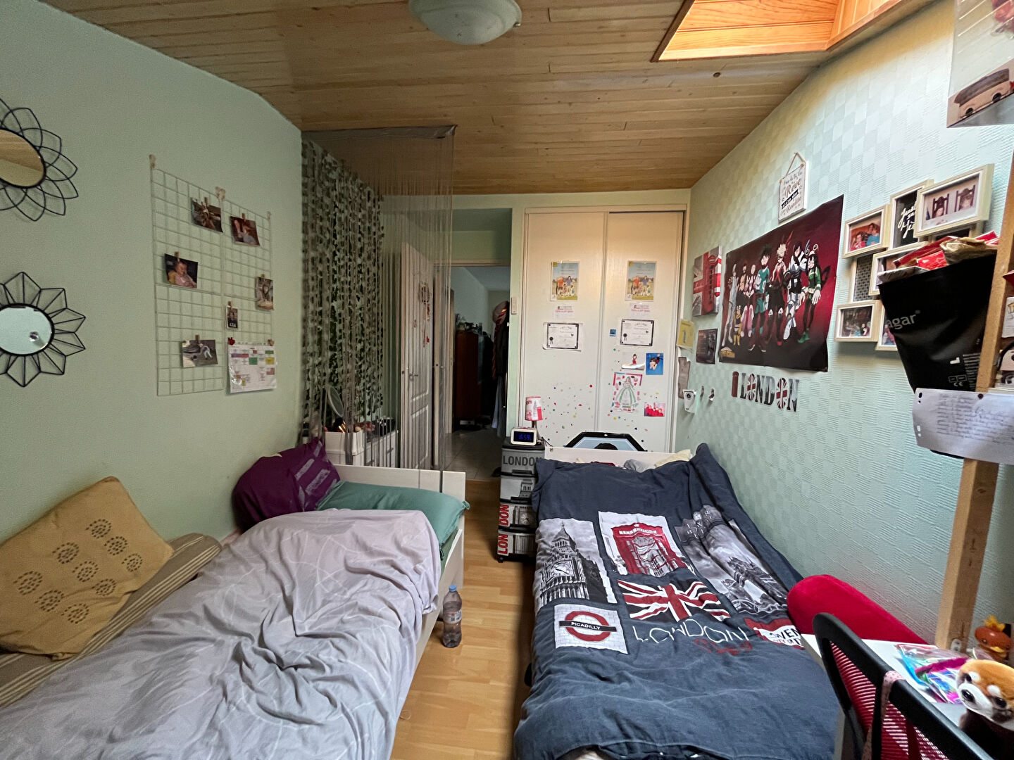 A l'étage on y trouve un grenier aménageable et deux chambres en enfilade.