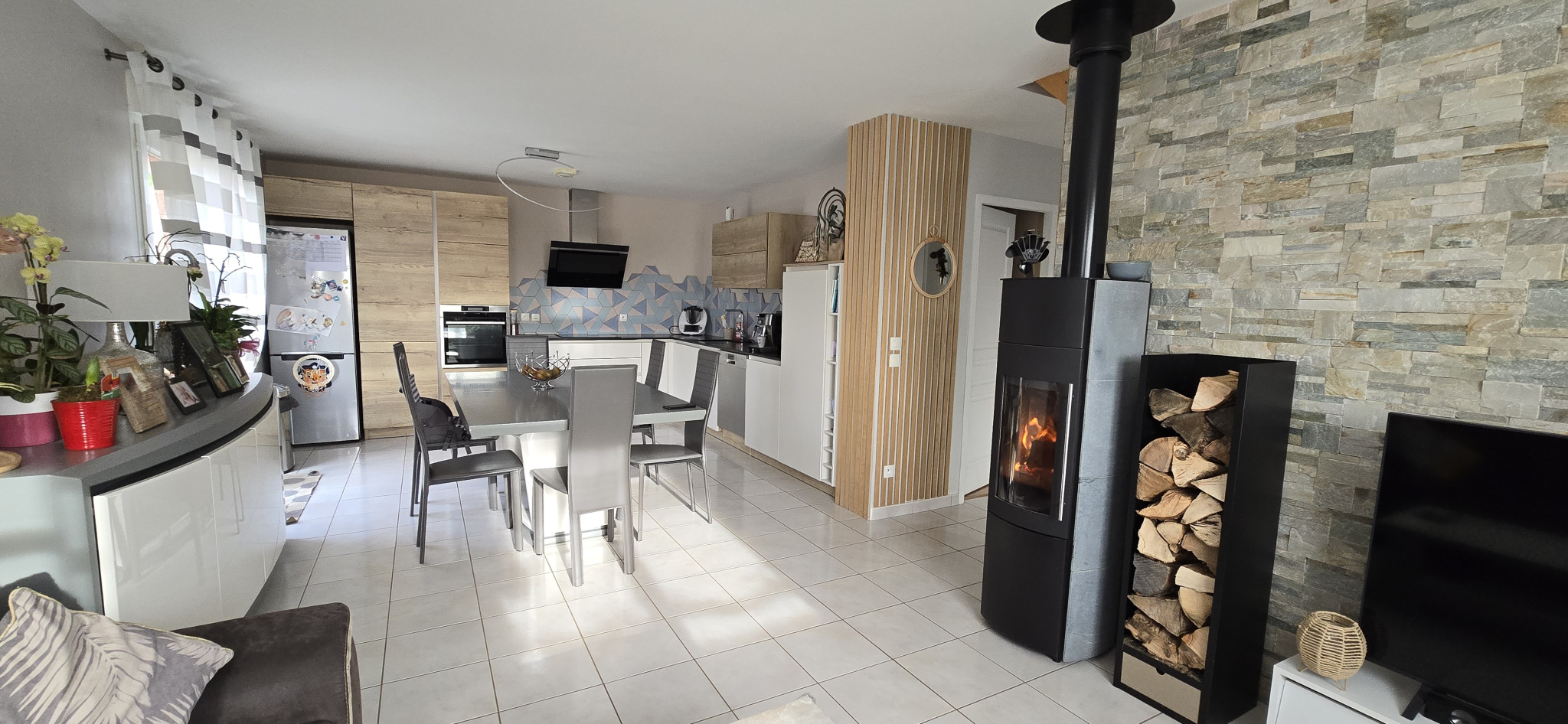 Surface habitable : 81 m2 mais possibilité de faire encore une chambre dans le grenier au dessus du garage de 15 m2.