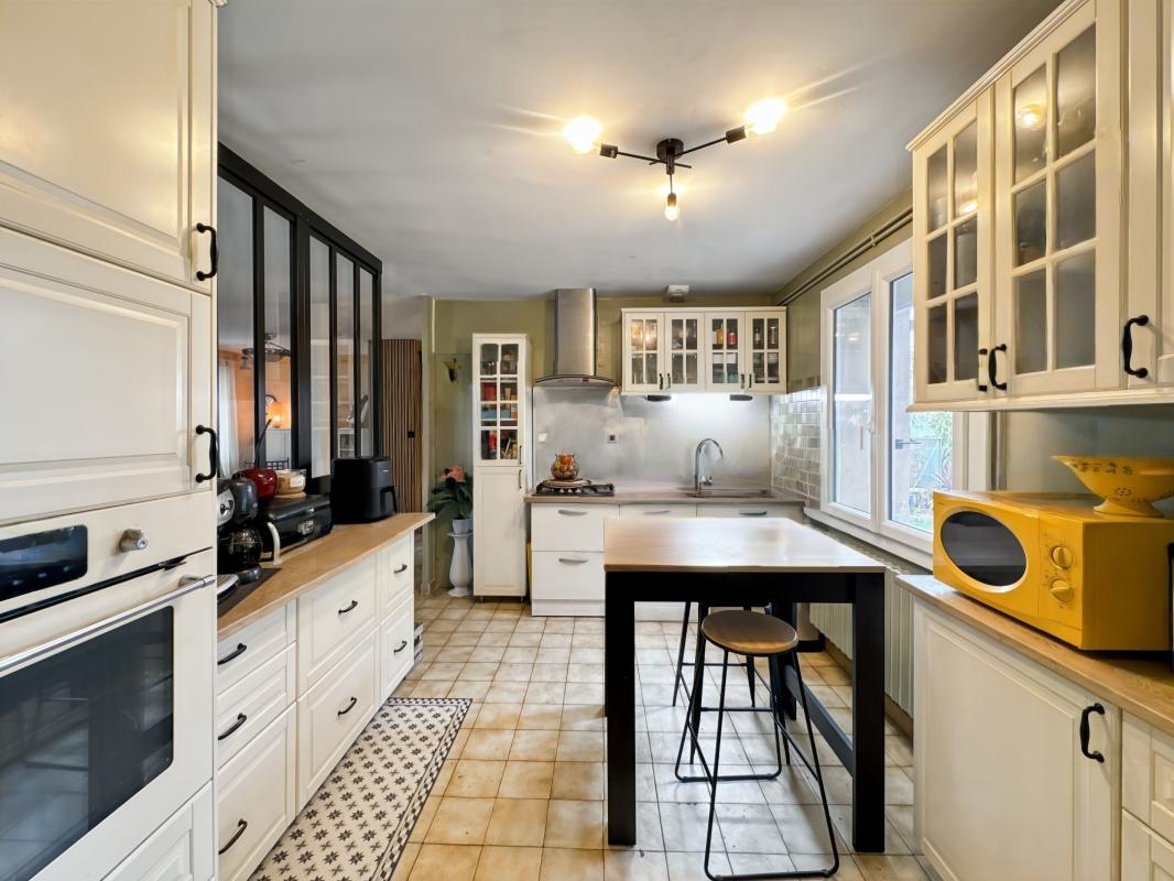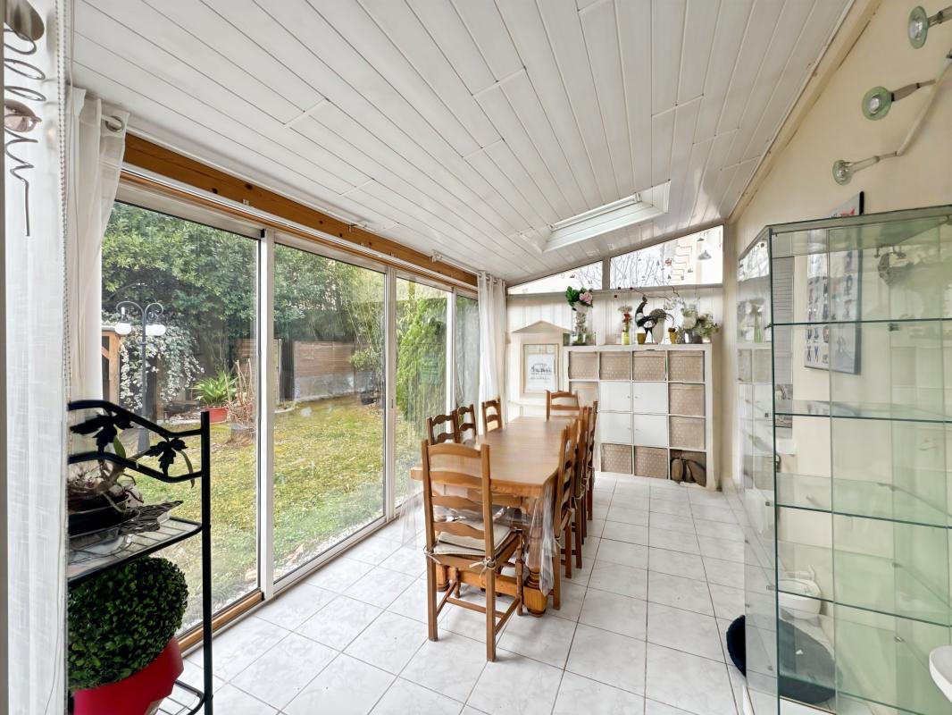 cette maison de 1960 est implantée sur une parcelle de 381 m². La maison offre 110 m² de superficies habitables, pour 128 m² au sol, auxquels s'ajoute un garage de 15 m². De plain-pied, vous découvrirez une belle pièce de vie conviviale, articulée autour d'un espace salon et d'un coin salle à manger, une cuisine aménagée et équipée, séparée par une verrière, un cellier de 10m², deux chambres de 8 et 13m², une salle de bains, un WC indépendant et un bureau. En complément, une véranda chauffée de 17 m², ouverte sur le jardin. À l'étage, en mezzanine, se trouve une chambre supplémentaire avec espace bureau, aménagée sous les toits, dans une ambiance chaleureuse et intimiste, idéale pour un adolescent, un espace télétravail ou une chambre d'appoint. La maison dispose de places de stationnement, un carport et un garage de 15 m². Côté technique, le chauffage est produit par une chaudière gaz, et la mezzanine dispose de deux climatisations. Les menuiseries sont un mix de bois et PVC double vitrage. Faible taxe foncière . DPE D.