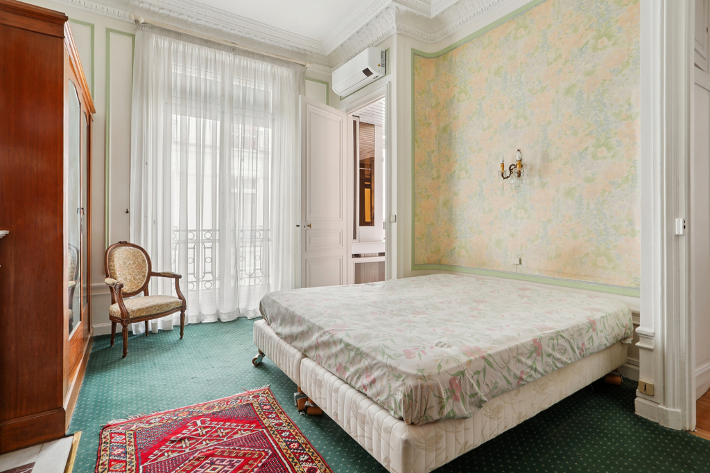 Le parquet point de Hongrie, les moulures et les cheminées en marbre sont autant de beaux éléments d'époque de cet ancien palace qui pourront être mis à valeur dans une future décoration élégante.
