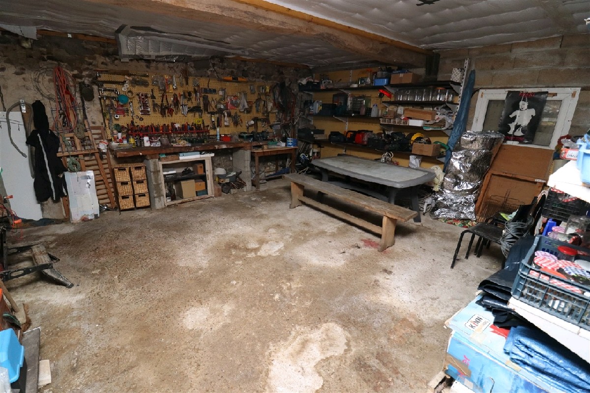 A l?étage : 3 chambres, bel espace ouvert (toit cathédral), salle d?eau avec wc. Chaudière neuve, double vitrage PVC et aluminium. Il reste 80 m² aménageables.