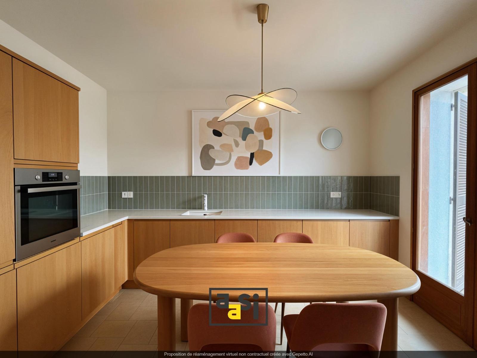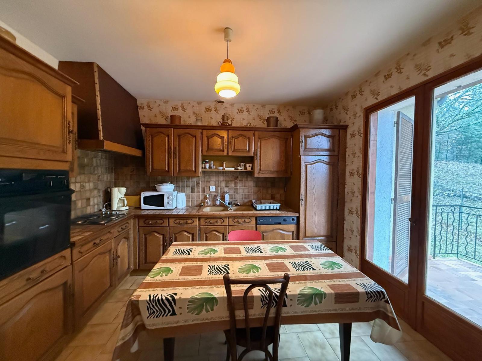 - Belle pièce de vie avec cuisine ouverte donnant directement sur le jardin