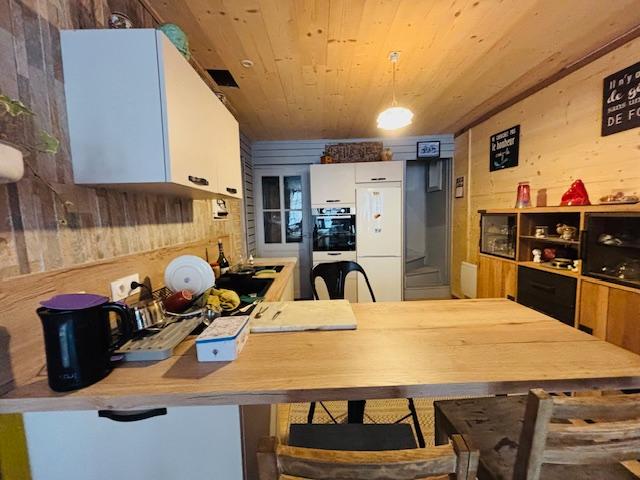 AU REZ DE CHAUSSEE - d'une pièce de vie avec cuisine ouverte et équipée (23.73 m²) avec accès sur un petit balcon- terrasse.