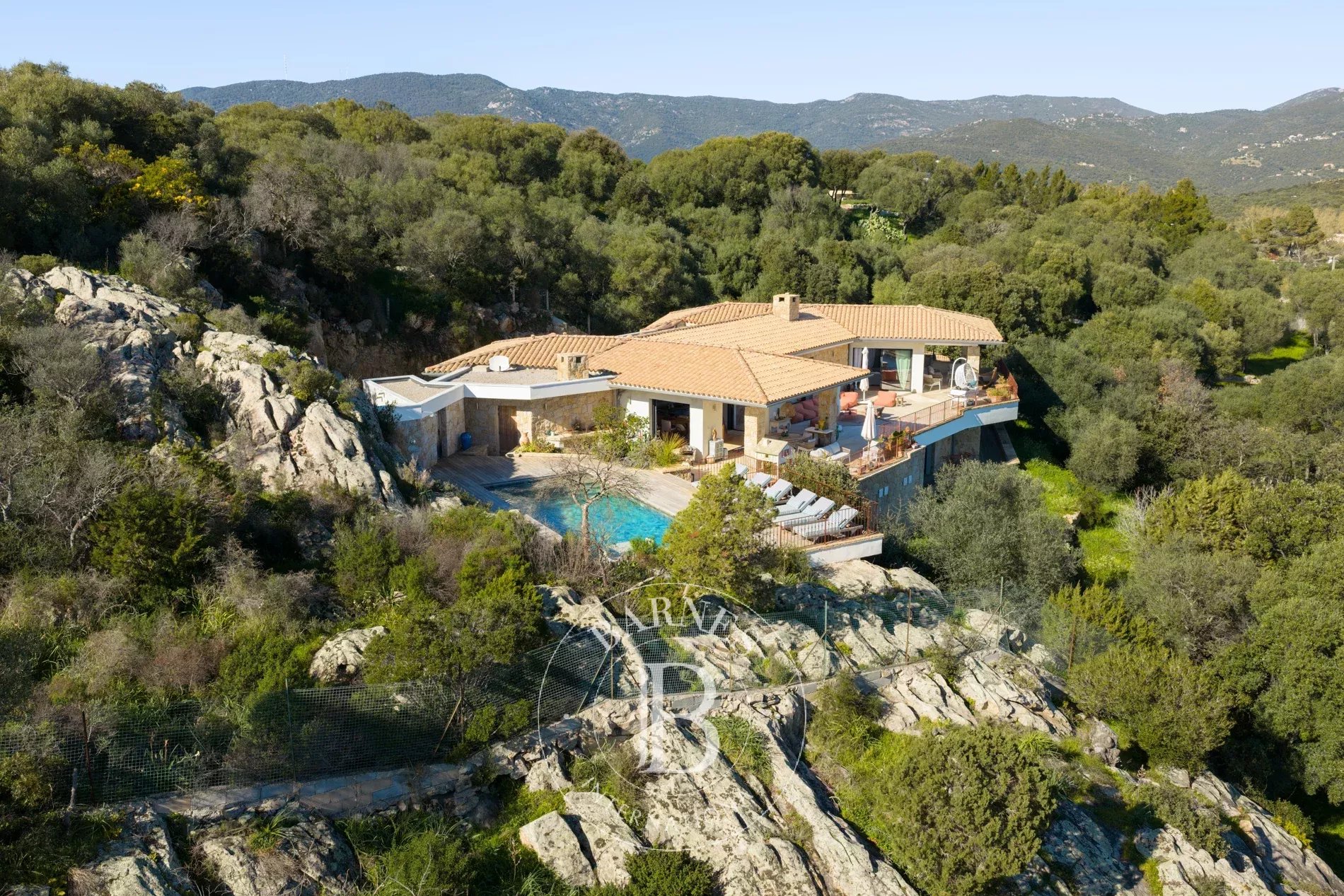 Implantée sur un terrain paysager d'environ 5 822 m² avec piscine, elle séduit par ses volumes généreux, son calme absolu et sa proximité des plages aux eaux turquoise.