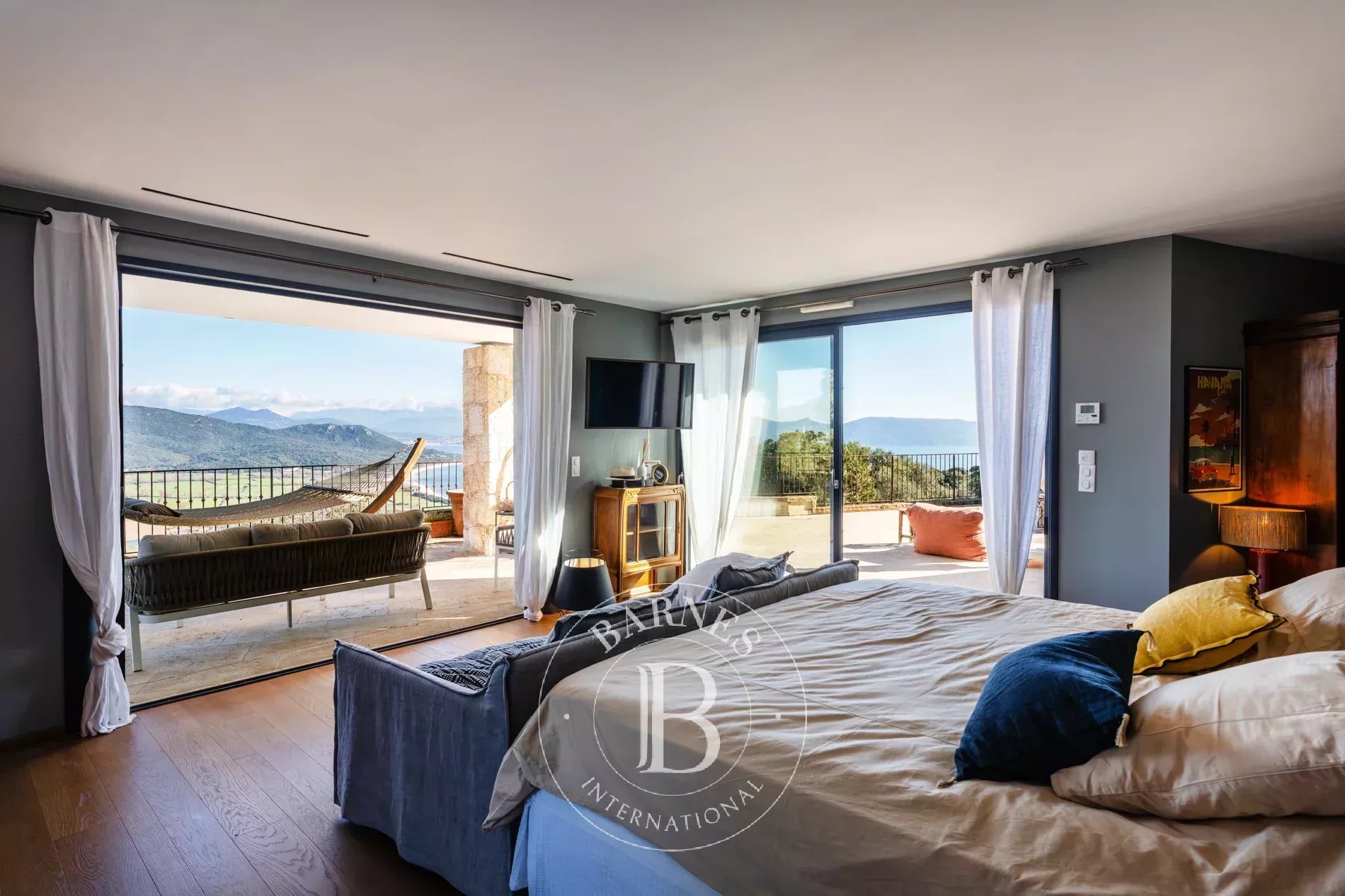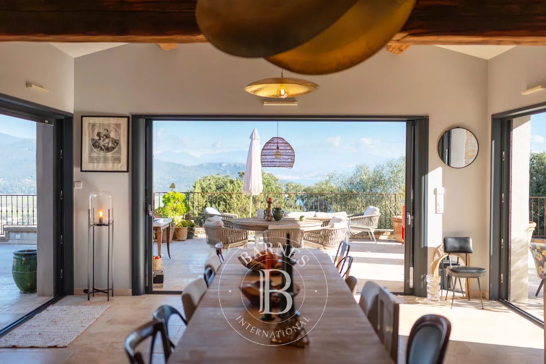 Sur les hauteurs d’un village préservé, cette villa contemporaine d’environ 379 m² offre une vue imprenable sur la mer et le Golfe du Valinco.