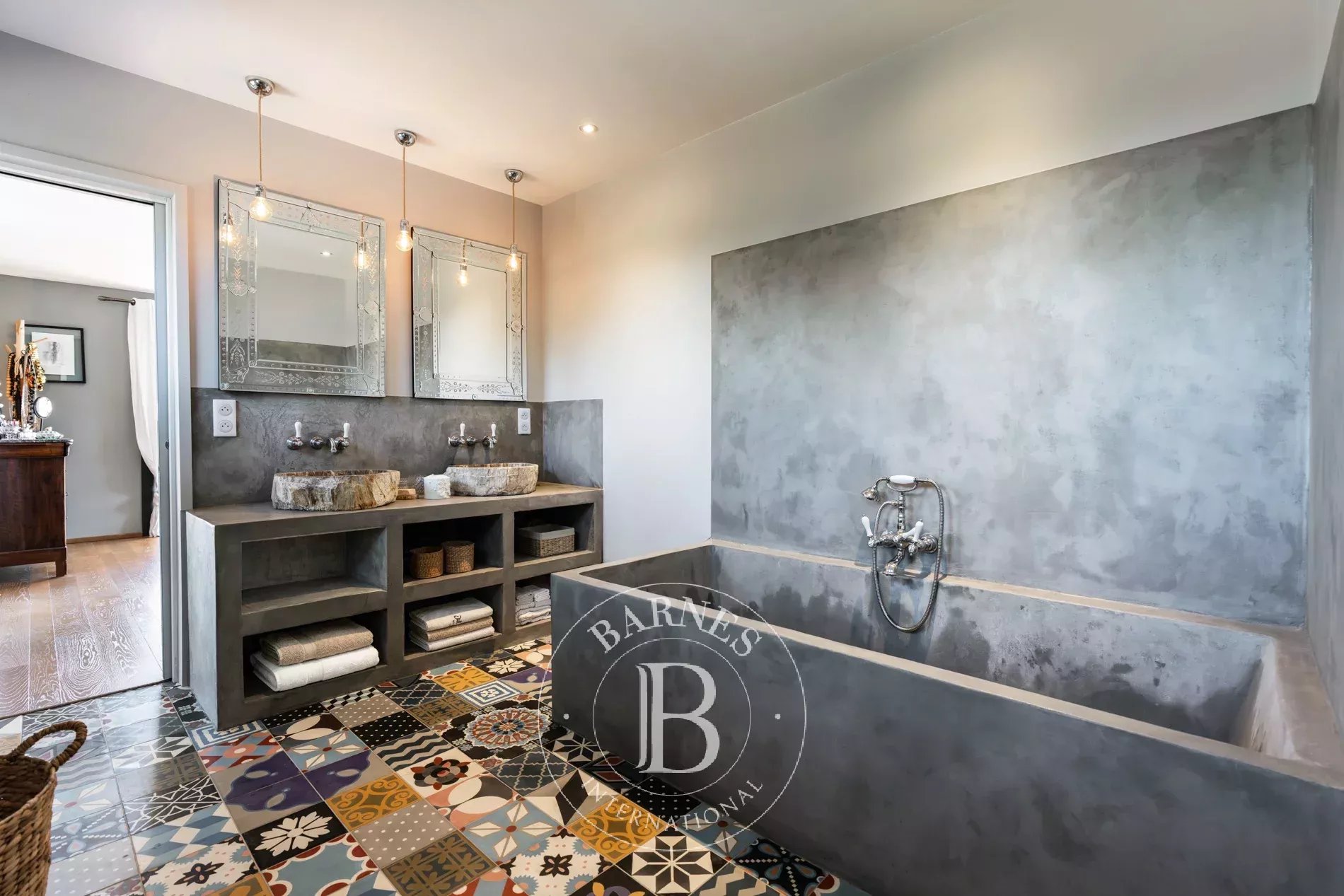 Elle dispose d’un vaste séjour avec cheminée, 7 suites, un studio indépendant, une cave à vin et un garage double.