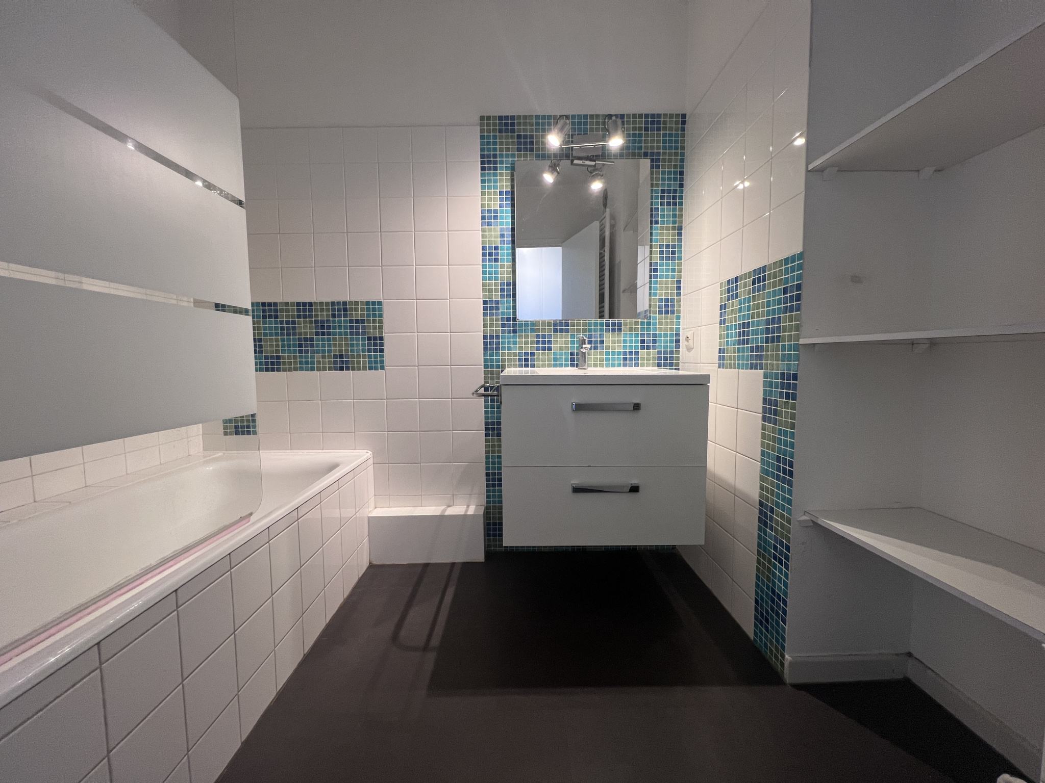 Il se compose d'une entrée avec grands placards, d'un séjour avec baie vitrée et balcon, d'une cuisine attenante, de 2 chambres (dont une avec placards), d'une salle de bains et d'un WC indépendant.