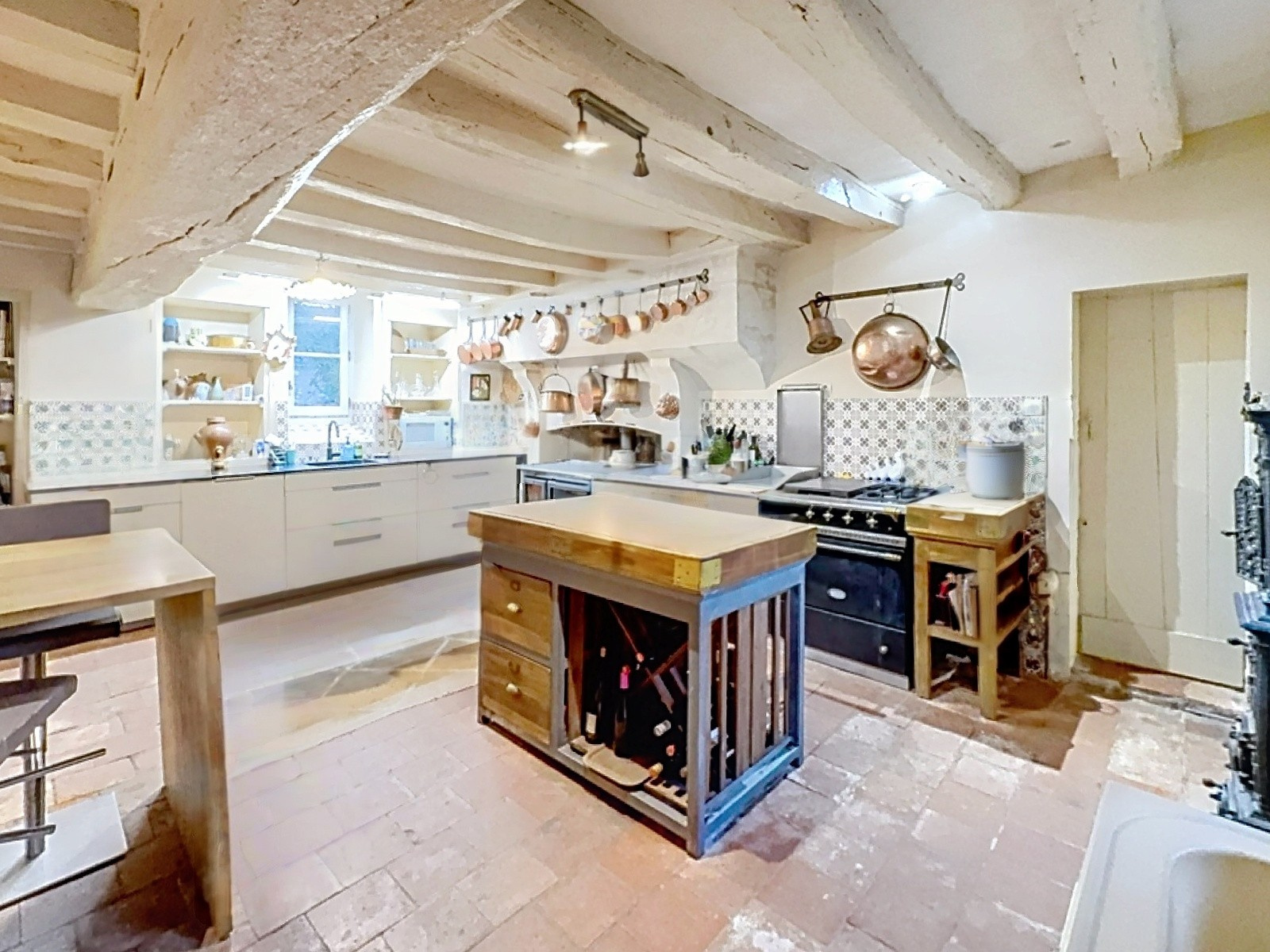 1er étage : 2 escaliers - sols sur tomettes - 3,20 m sous poutres Chambre 2 de 25 m2 (cheminée XVIIe, placards) et salle de bains (baignoire, lavabo, WC) Couloir de 6,30m x 1,70m Chambre 3 de 24 m2 (cheminée marbre, placard) et salle de douches (douche, lavabo, WC) Salon traversant de 36 m2 (cheminée avec trumeau, placard, balcon côté cour au-dessus de l'entrée) Couloir de 7,70m x 1,30m avec escalier no2 Chambre 4 de 20 m2 (tissus tendus, placard, cheminée), dressing de 10 m2 et salle de douches (lavabo, bidet, WC) Bureau-bibliothèque de 26 m2 traversant (cheminée) Salle de bains (baignoire, lavabo, bidet, WC) Chambre 6 sous charpente de 45 m2 avec une cuisine aménagée (12m x 6m au sol, poële à bois, climatisation)