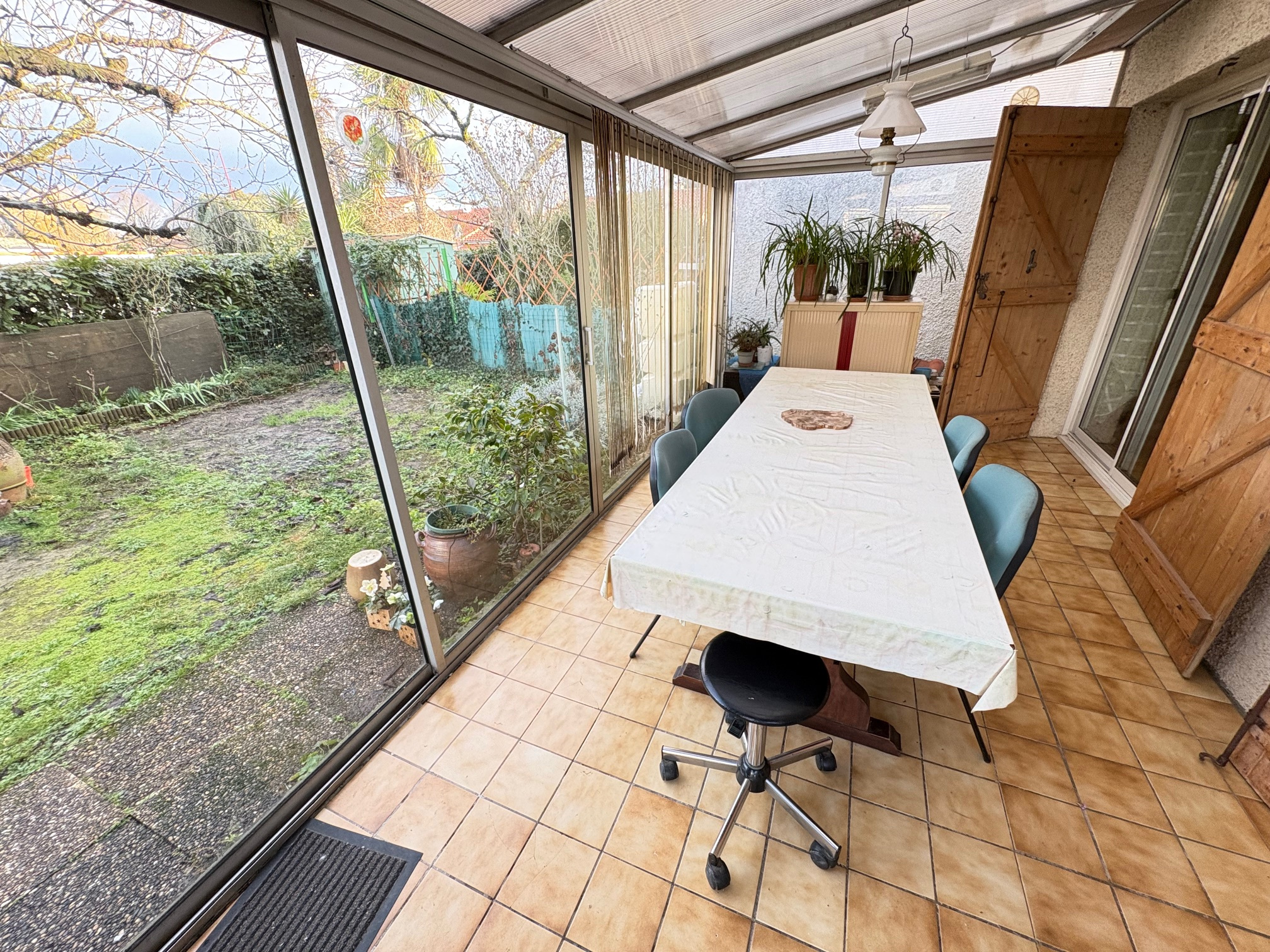 INTEGRAL IMMOBILIER / 16, Rue de la République 31270 Frouzins : 06.82.73.55.60 - 05.61.40.03.02. A 20min de Toulouse, FROUZINS, quartier résidentiel proche ECOLE ALAIN BERTRAND et Villeneuve Tolosane, une maison à étage T4/5 de 96m2 hab, sur 410m2 de terrain. Construction de 1977, avec plusieurs dépendances : atelier de 11m2, garage attenant de 18m2, et un vaste garage indépendant de 45m2. Gouttières Alu, menuiseries en double vitrage, chauffage gaz, clim (froid), raccordement fibre, tout à l'égout, salon séjour avec poêle à granulés, et nombreux rangements. Composition : entrée, salon séjour, cuisine indépendante, wc et véranda. Au 1ER : 3 chambres, dégagement, et salle de bains. Villes proches : Cugnaux, Roques, Muret, Portet sur Garonne, Tournefeuille, Colomiers... Les informations sur les risques auxquels ce bien est exposé sont disponibles sur le site Géorisques http://www.georisques.gouv.fr O6.82.73.55.6O.
